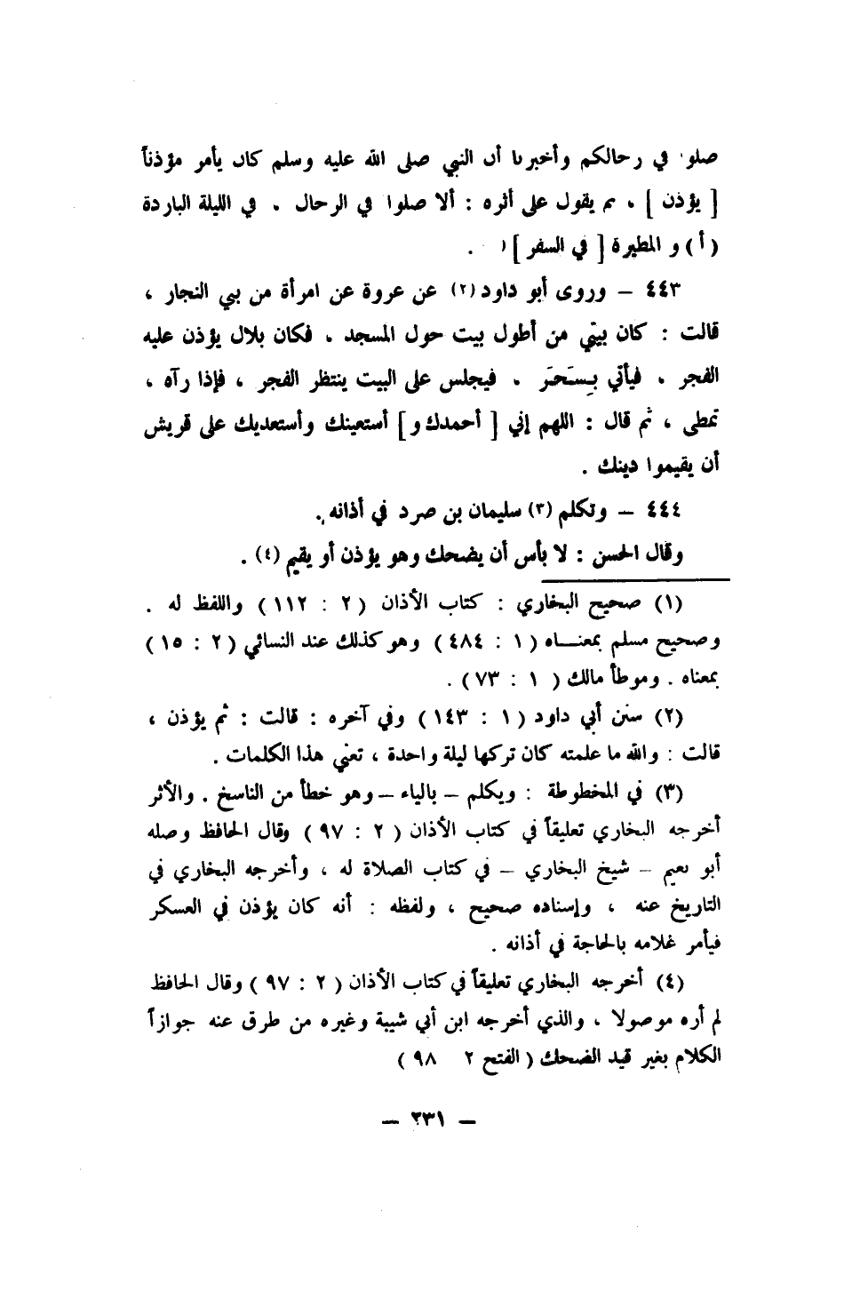 4 أخرجه البخاري تعليقا في كتاب الأذان (2: 97) ، وقال الحافظ: لم أره موصولا, والذي أخرجه ابن أبي شيبة وغيره من طرق عنه جواز الكلام بغير قيد الضحك (الفتح 2: 98) .