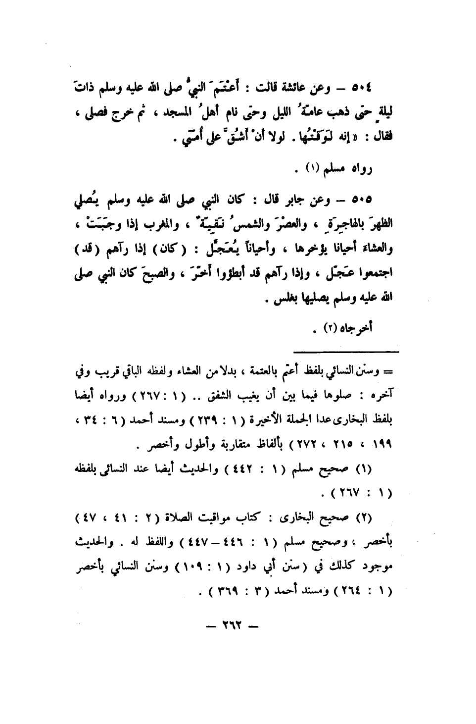 504 - وعن عائشة قالت: (أعْتَمَ النبيُّ صلى الله عليه وسلم ذاتَ ليلةٍ حتى ذهب عامَّةُ الليل وحتى نام أهلُ المسجد، ثم خرج فصلى، فقال: " إنه لَوَقْتُهَا. لولا أنْ أشُقَّ على أُمتي) .