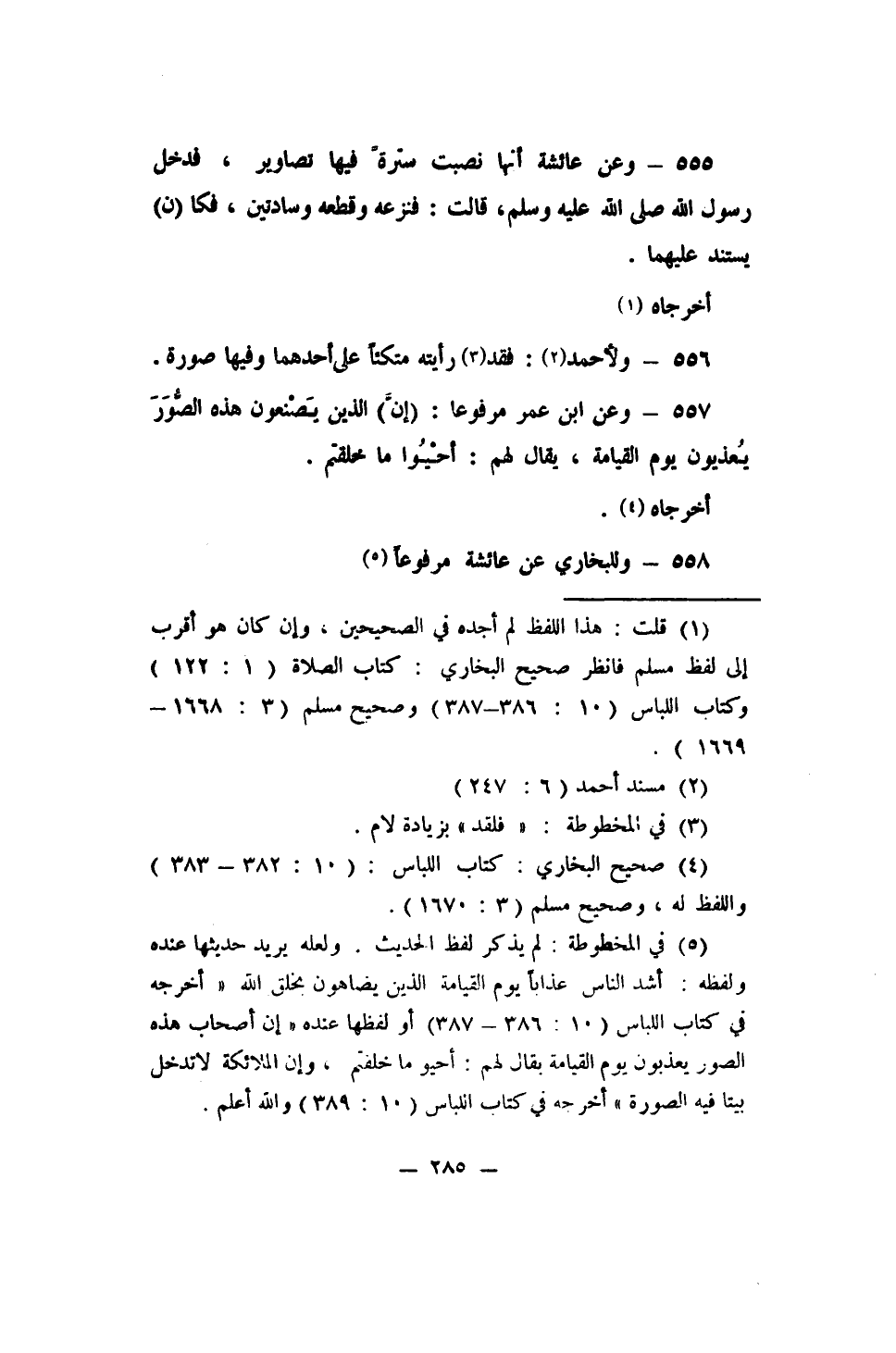 556 - ولأحمد 2: (فقد 3 رأيته متكئاً على إحداهما وفيها صورة) .