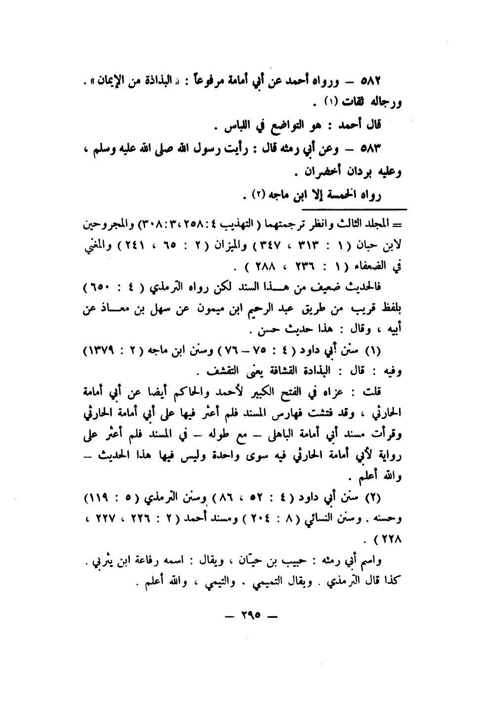 582 - ورواه أحمد عن أبي أمامة مرفوعاً: (البذاذة من الإيمان) . ورجاله ثقات 1.