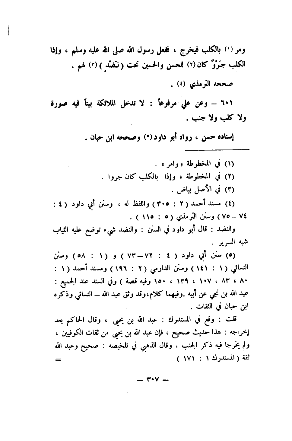 5 سنن أبي داود (4: 72-73) و (1: 58) وسنن النسائي (1: 141) وسنن الدارمي (2: 196) ومسند أحمد (1: 80 , 83, 107, 139, 150) وفيه قصة، وفي السند عند الجميع: عبد الله بن نجي عن أبيه. وفيهما كلام, وقد وثق عبد الله- النسائي وذكره ابن حبان في الثقات.