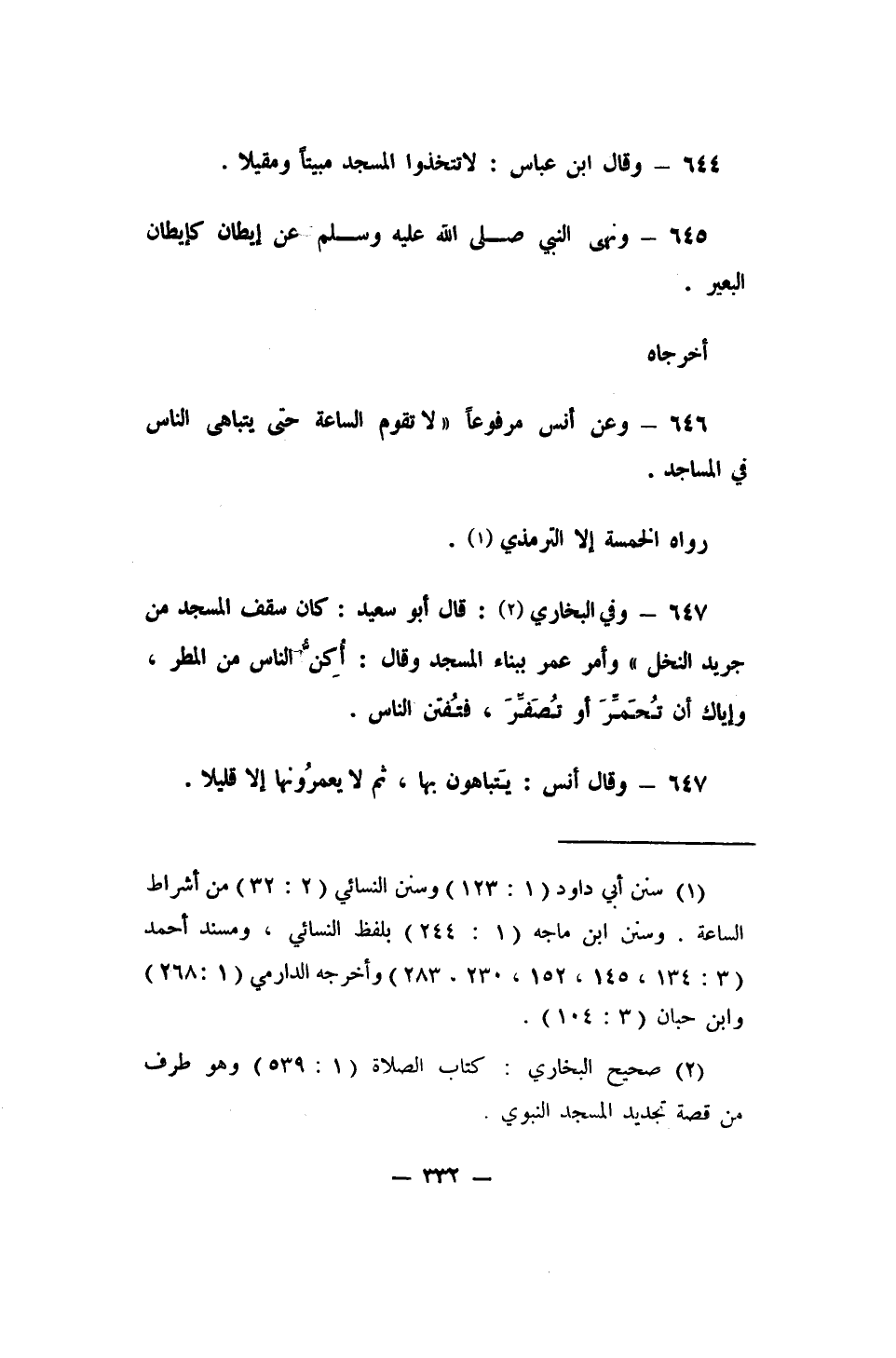 646 - وعن أنس مرفوعاً: (لا تقوم الساعة حتى يتباهى الناس في المساجد) .