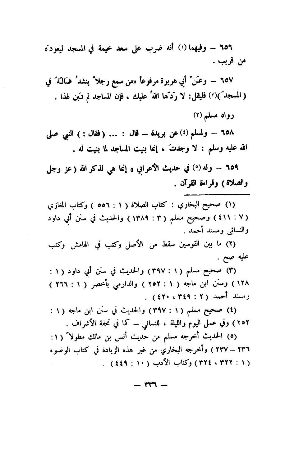 658 - ولمسلم4 عن بريدة قال: ... (فقال) : النبي صلى الله عليه وسلم: (لا وجَدْتَ، إنما بنيت المساجد لما بنيت له.