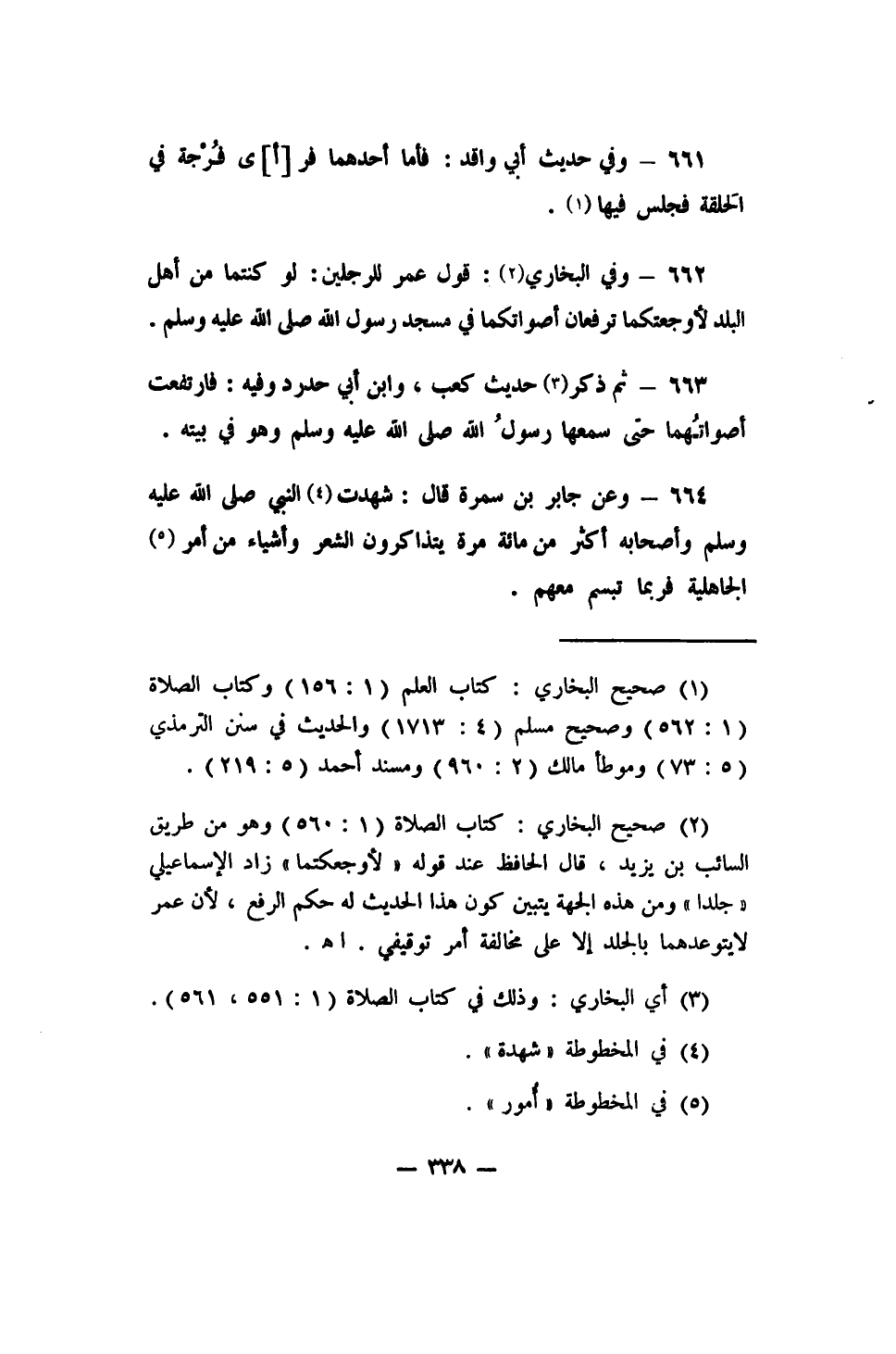 662 - وفي البخاري 2: قول عمر للرجلين: (لو كنتما من أهل البلد لأوجعتكما، ترفعان أصواتكما في مسجد رسول الله صلى الله عليه وسلم) .