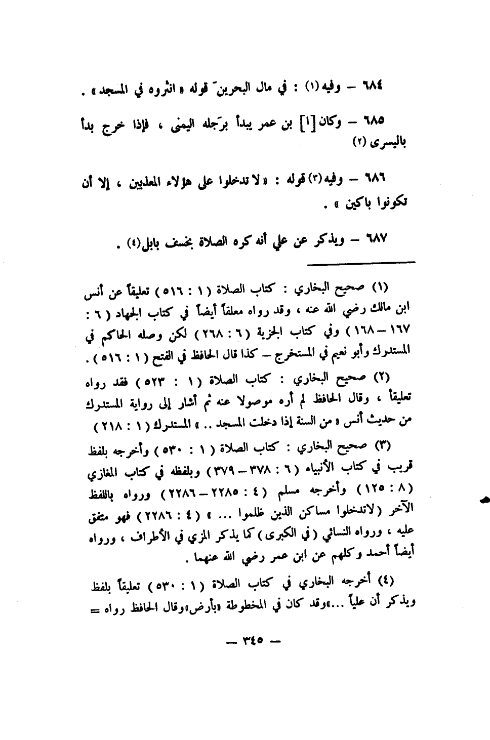 685- (وكان [ا] بن عمر يبدأ برِجله اليمنى، فإذا خرج بدأ باليسرى) 2.