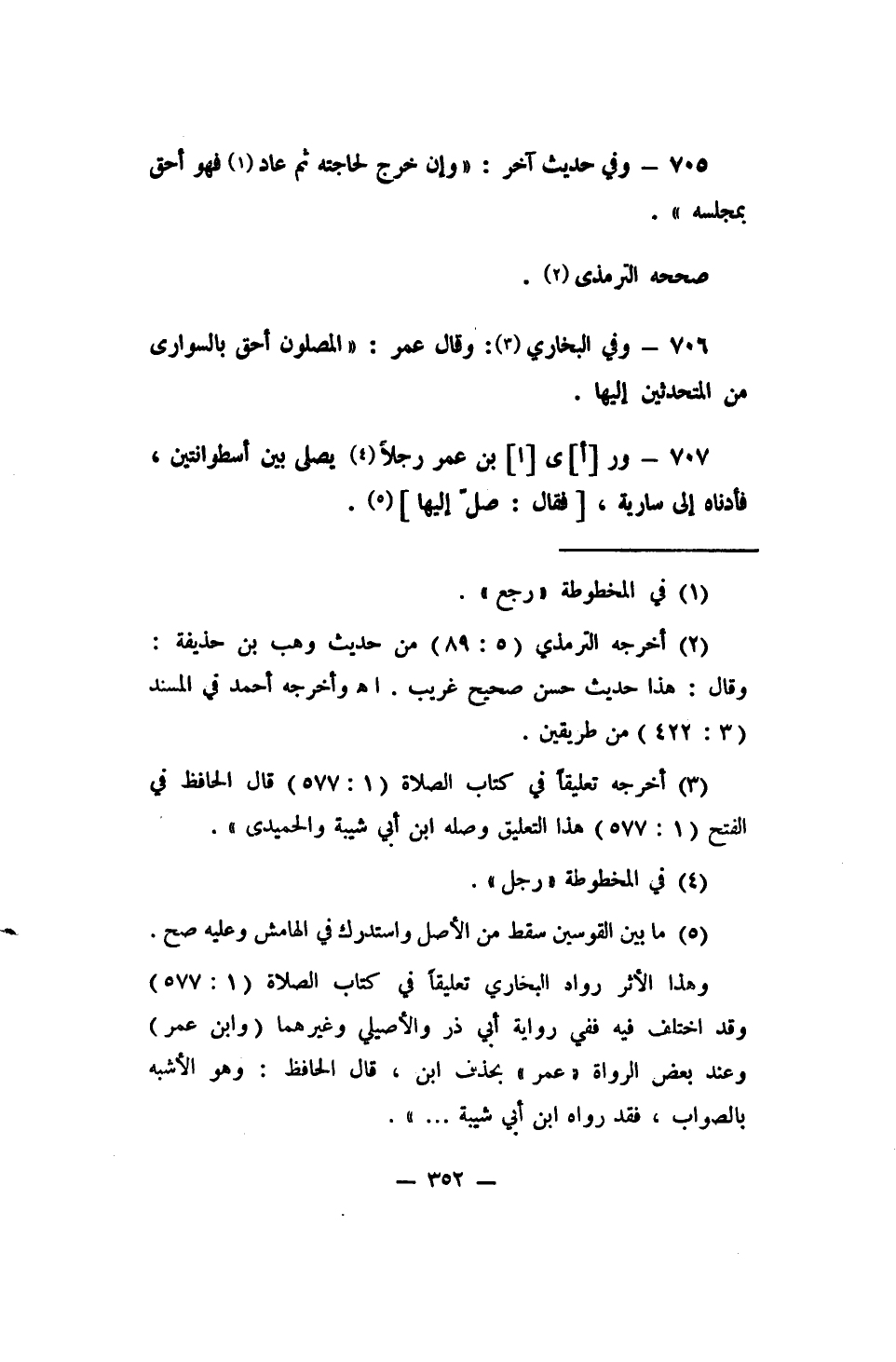 706- وفي البخاري 3 وقال عمر: (المصلون أحق بالسواري من المتحدثين إليها) .