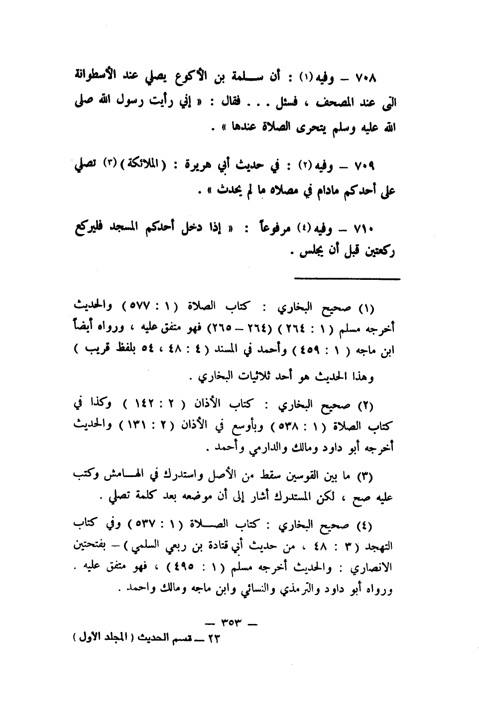 710- وفيه 4 مرفوعاً: (إذا دخل أحدكم المسجد فليركع ركعتين قبل أن يجلس) .