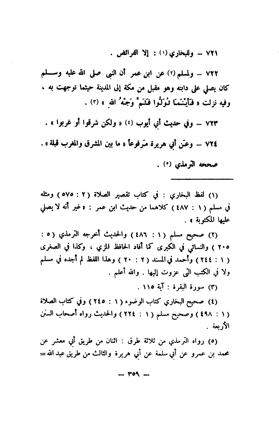 722- ولمسلم 2 عن ابن عمر: (أن النبي صلى الله عليه وسلم كان يصلي على دابته وهو مقبل من مكة إلى المدينة حيثما توجهت به، وفيه نزلت {فَأَيْنَمَا تُوَلُّوا فَثَمَّ وَجْهُ اللَّهِ} (3.