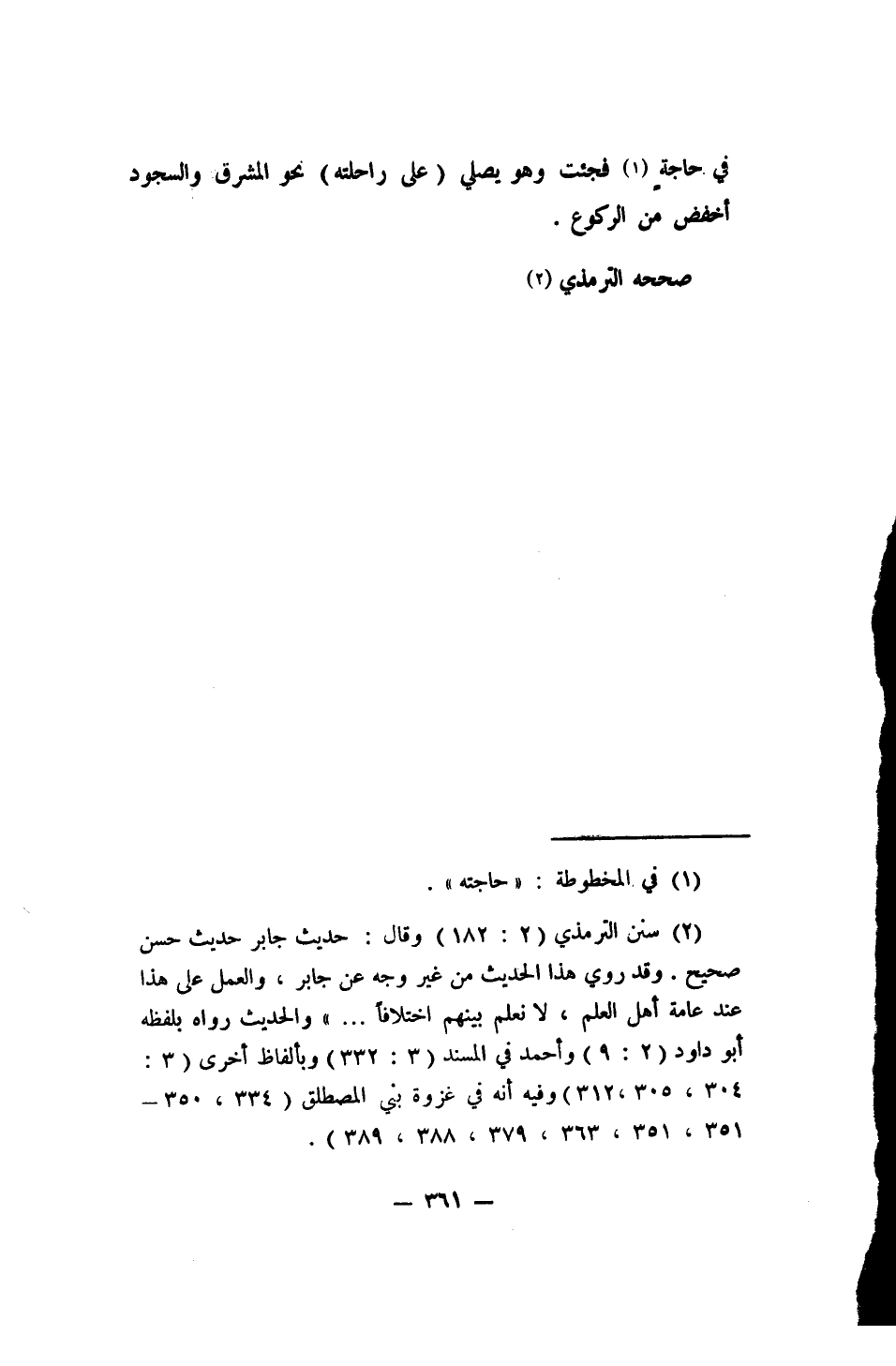 في حاجةٍ، 1 فجئت وهو يصلي (على راحلته) نحو المشرق، والسجود أخفض من الركوع) .