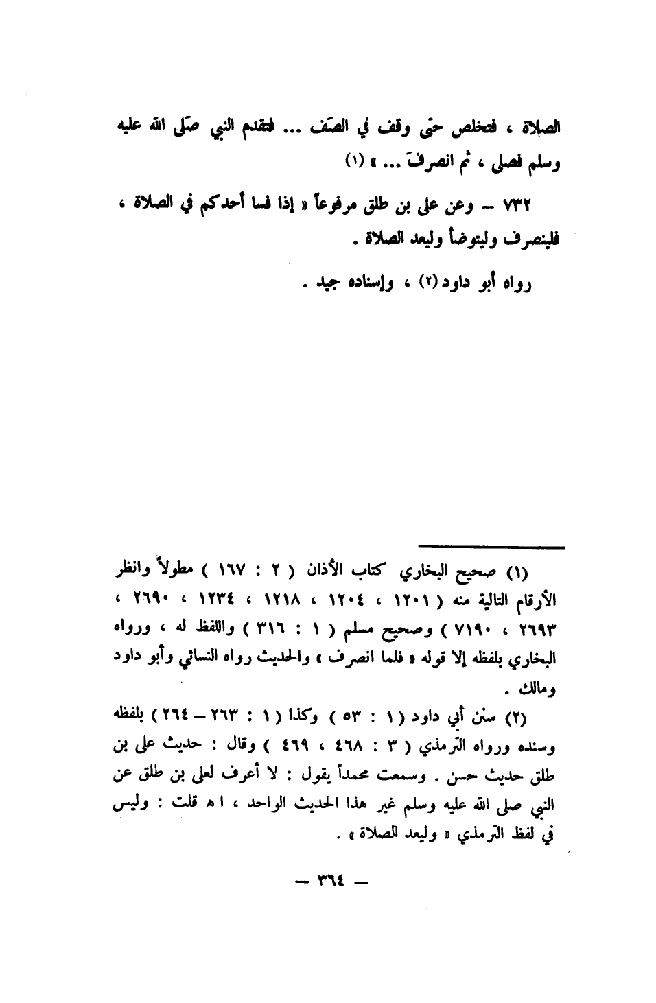 732- وعن علي بن طلق مرفوعاً: (إذا فسا أحدكم في الصلاة، فلينصرف وليتوضأ وليعد الصلاة) .