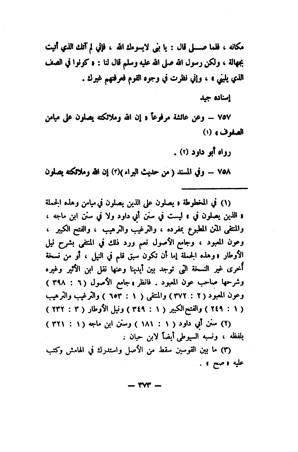 758- وفي المسند (من حديث البراء) 3: (إن الله وملائكته يصلون