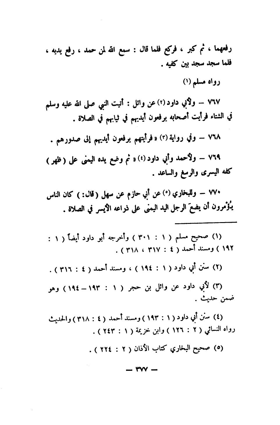 770- وللبخاري 5 عن أبي حازم عن سهل (قال) : (كان الناس يُؤْمَرُون أن يضعَ الرجل اليد اليمنى على ذراعه الأيسر في الصلاة.