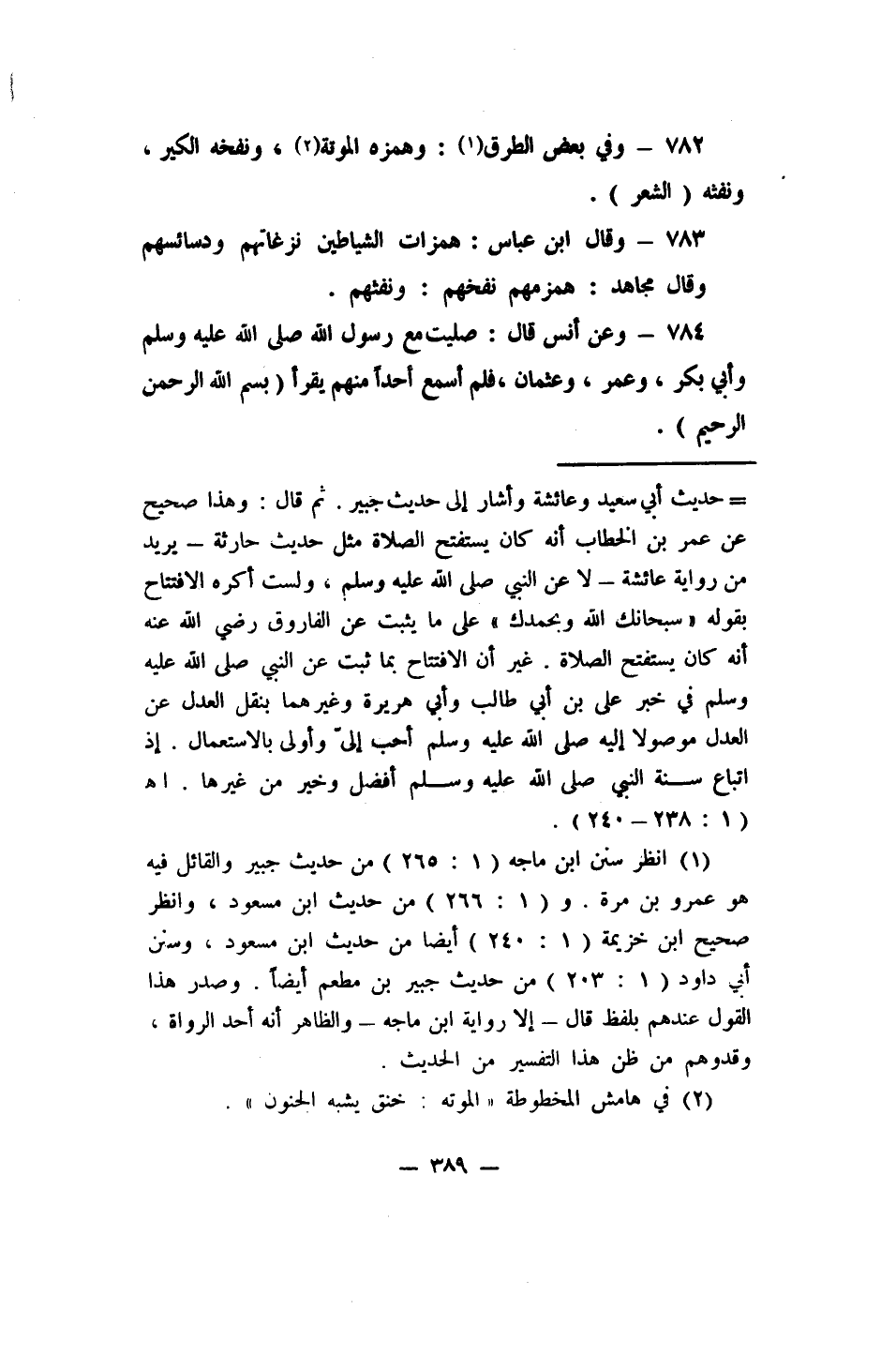782- وفي بعض الطرق 1 وهمزه الموتة 2 ونفخه الكبر، ونفثه (الشعر) .