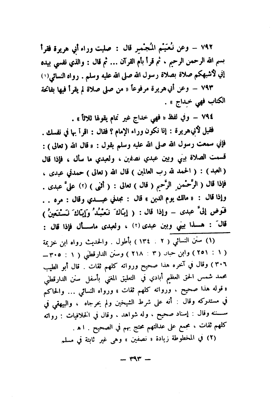 792- وعن نُعَيْم المُجَمِّر قال: (صليت وراء أبي هريرة فقرأ بسم الله الرحمن الرحيم ثم قرأ بأم القرآن ... ثم قال: والذي نفسي بيده إني لأشبهكم صلاة بصلاة رسول الله صلى الله عليه وسلم (رواه النسائي 1.