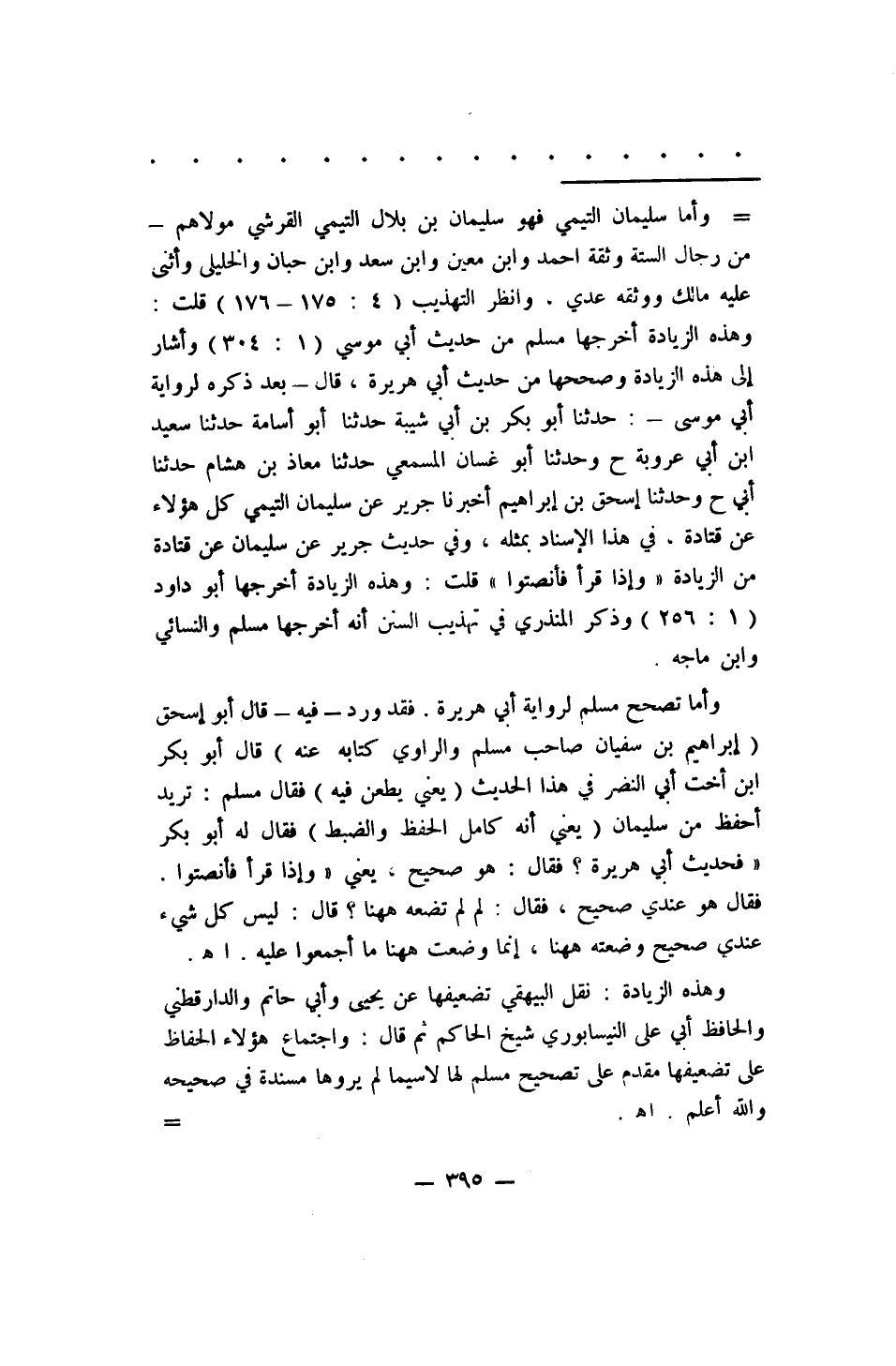 وهذه الزيادة: نقل البيهقي تضعيفها عن يحيى وأبي حاتم والدارقطني والحافظ أبي علي النيسابوري شيخ الحاكم، ثم قال: واجتماع هؤلاء الحفاظ على تضعيفها مقدم على تصحيح مسلم لها، لا سيما لم يروها مسندة في صحيحه والله أعلم. اهـ.