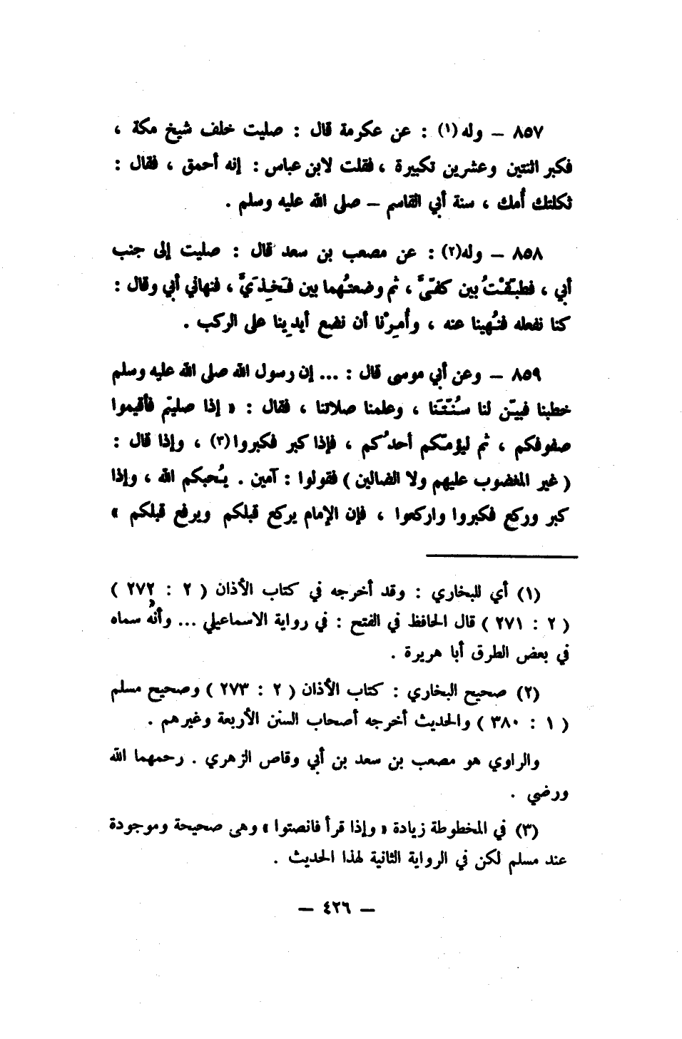 2 صحيح البخاري: كتاب الأذان (2: 273) وصحيح مسلم (1: 380) . والحديث أخرجه أصحاب السنن الأربعة وغيرهم. والراوي هو مصعب بن سعد ابن أبي وقاص الزهري، رحمهما الله ورضي.