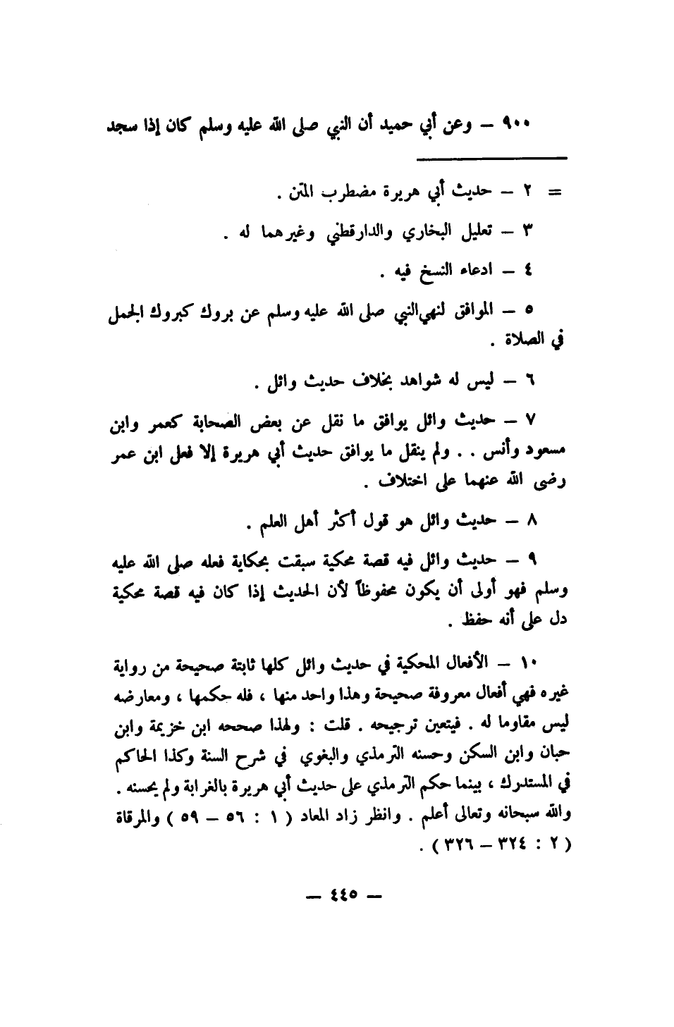 900- وعن أبي حميد أن النبي صلى الله عليه وسلم (كان إذا سجد