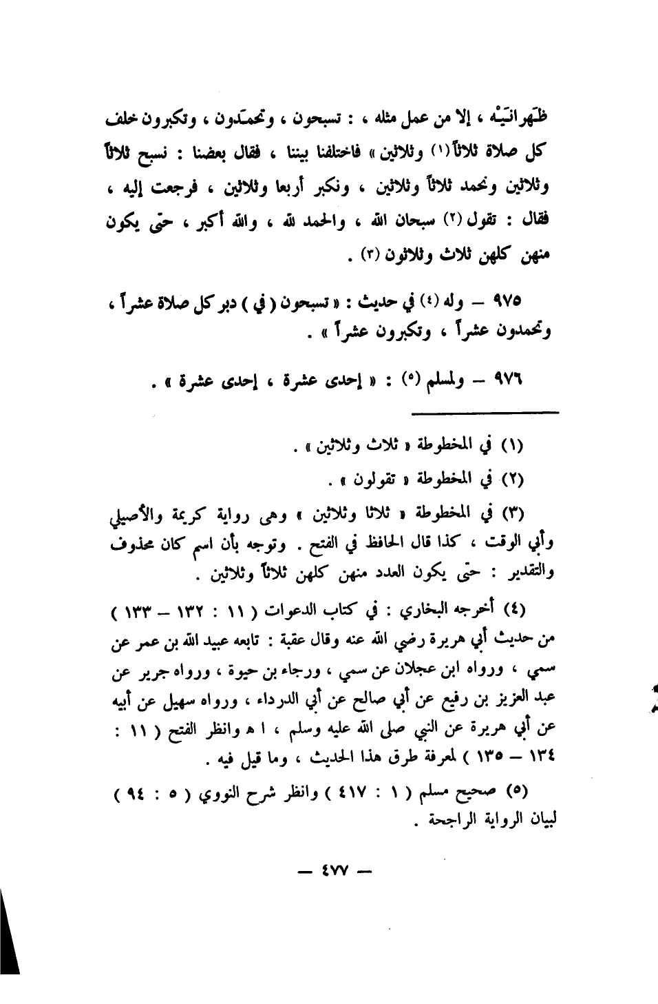 975- وله 4 في حديث: (تسبحون (في) دبر كل صلاة عشراً، وتحمدون عشراً، وتكبرون عشراً) .