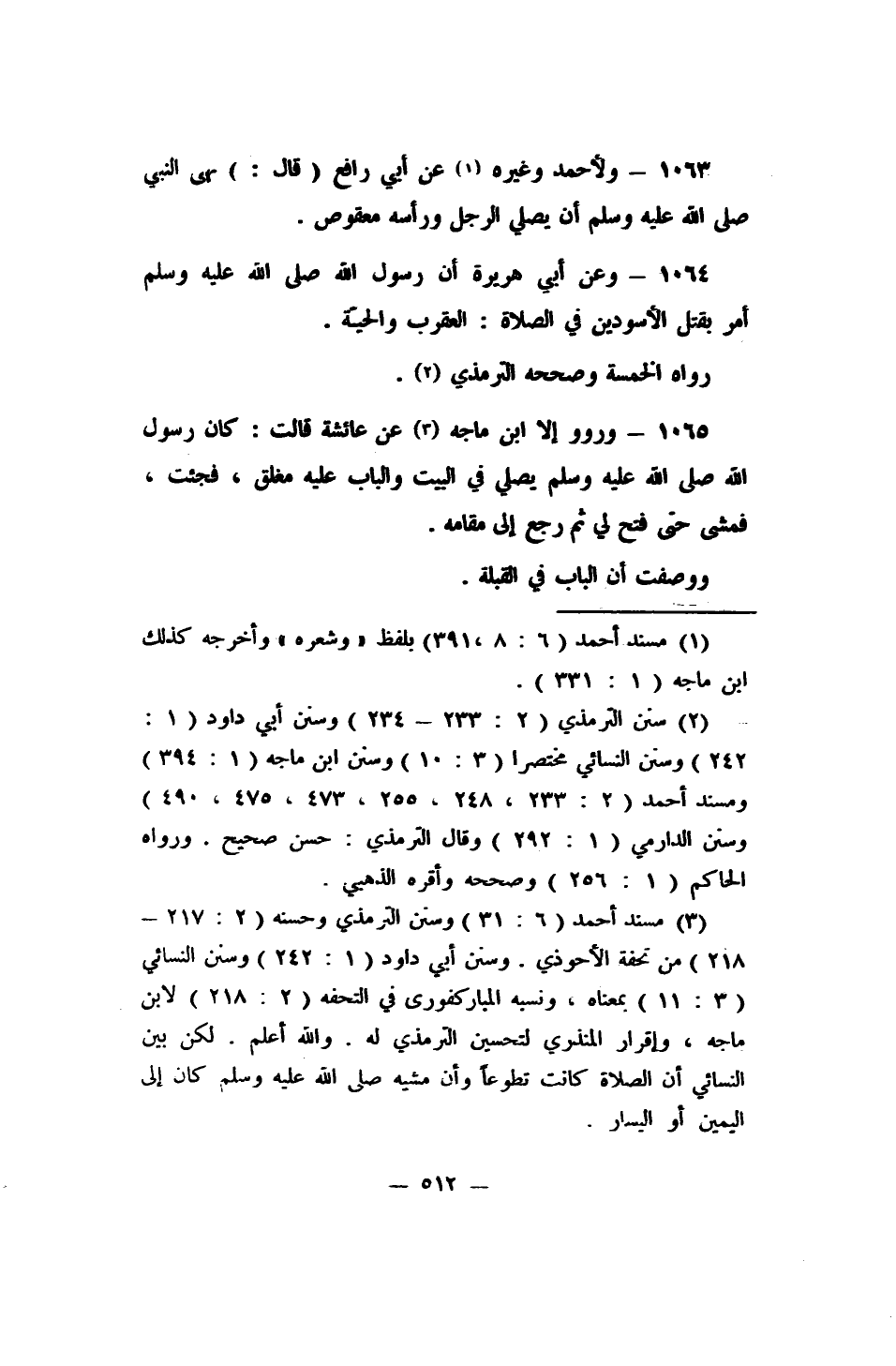 1063- ولأحمد وغيره 1 عن أبي رافع (قال:) (نهى النبي صلى الله عليه وسلم أن يصلي الرجل ورأسه معقوص) .
