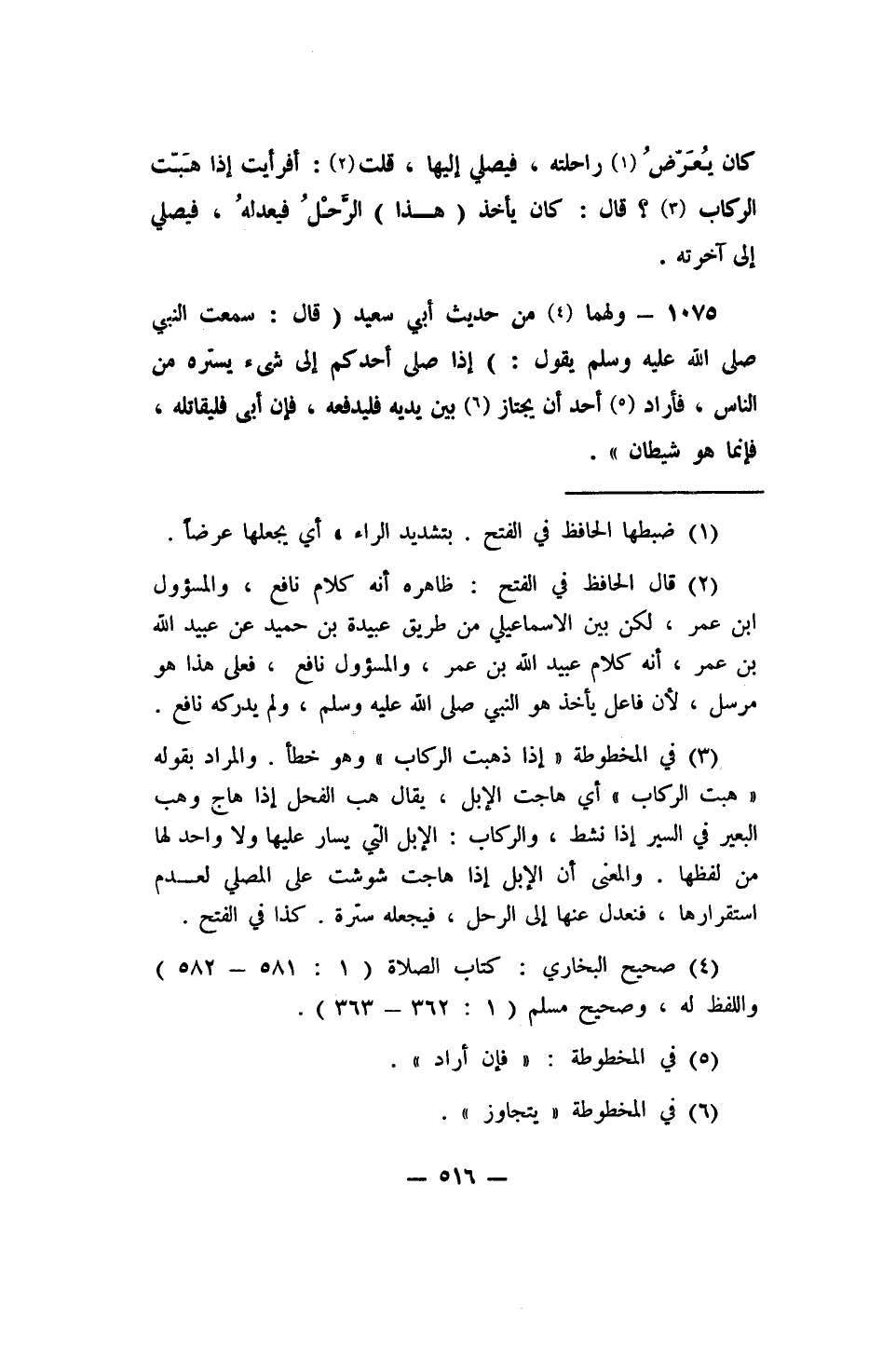 كان يُعَرِّضُ 1 راحلته، فيصلي إليها، قلت 2 أفرأيت إذا هَبّت الركاب 3؟ قال: كان يأخذ (هذا) الرَّحْلَ فيعدلهُ، فيصلي إلى آخرته) .