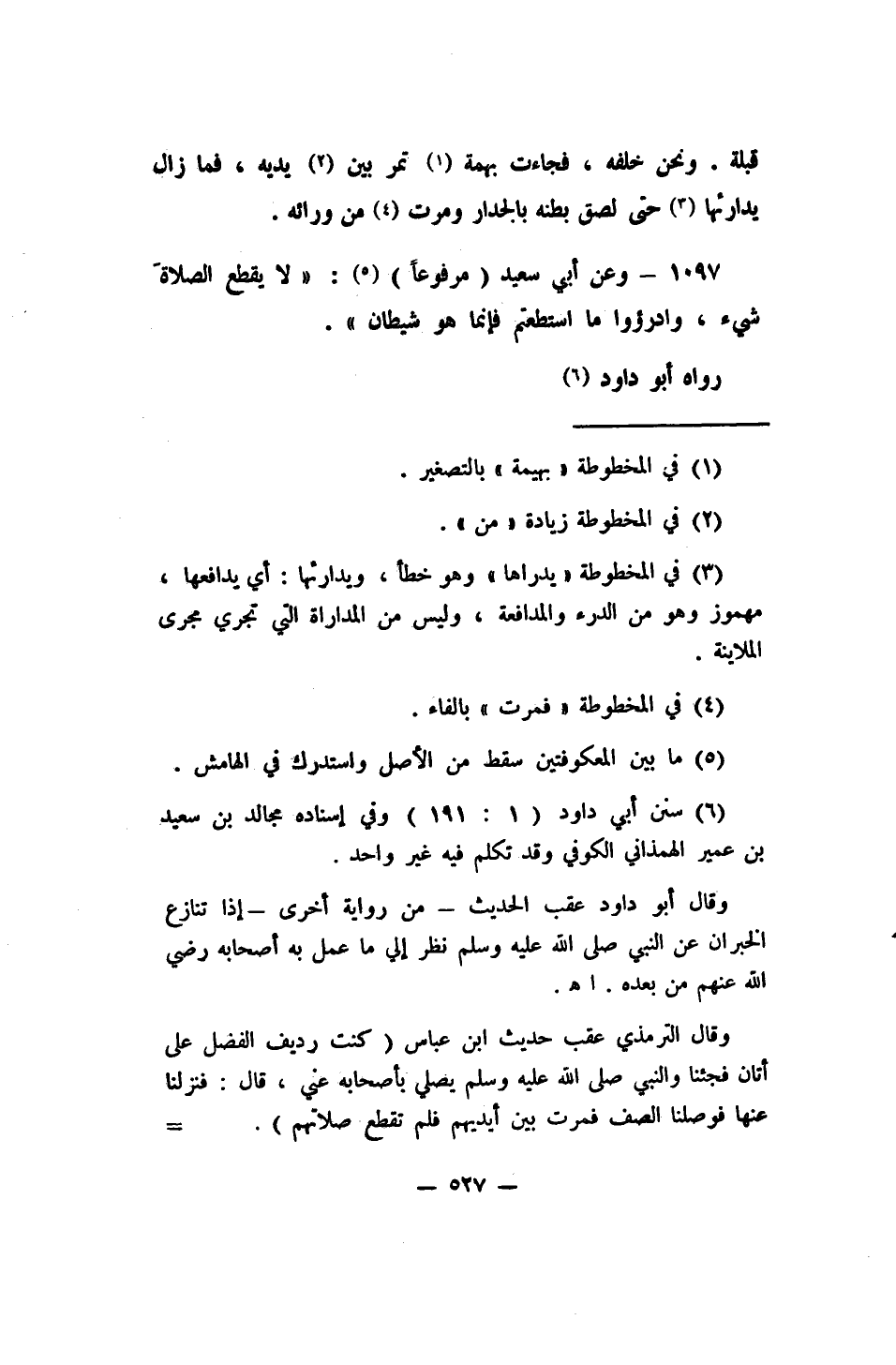 1097- وعن أبي سعيد (مرفوعاً) 5: (لا يقطع الصلاةَ شيء، وادرؤوا ما استطعتم، فإنما هو شيطان (رواه أبو داود 6.