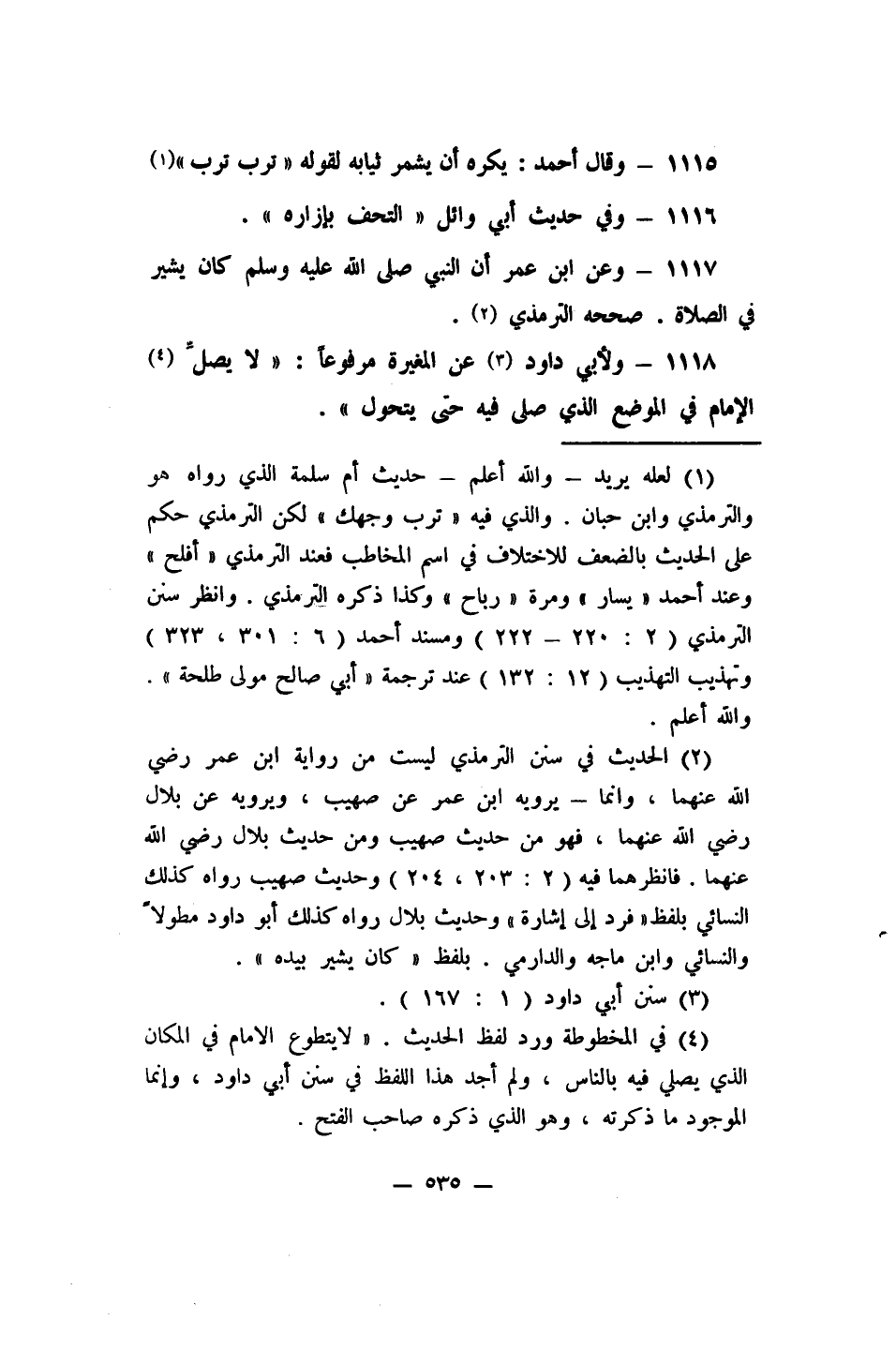 1115- وقال أحمد: (يكره أن يشمر ثيابه لقوله ترب ترب) 1.