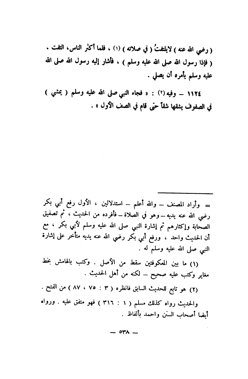 (رضي الله عنه) لا يلتفتُ (في صلاته) ، 1 فلما أكثر الناس، التفت، (فإذا رسول الله صلى الله عليه وسلم) ، فأشار إليه رسول الله صلى الله عليه وسلم يأمره أن يصلي) .
