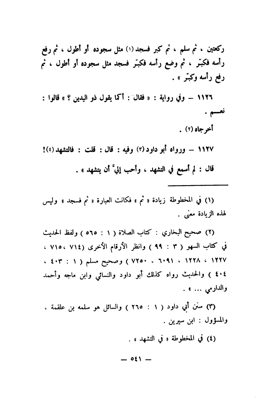 1126- وفي رواية: (فقال: أكما يقول ذو اليدين؟ قالوا: نعم) .