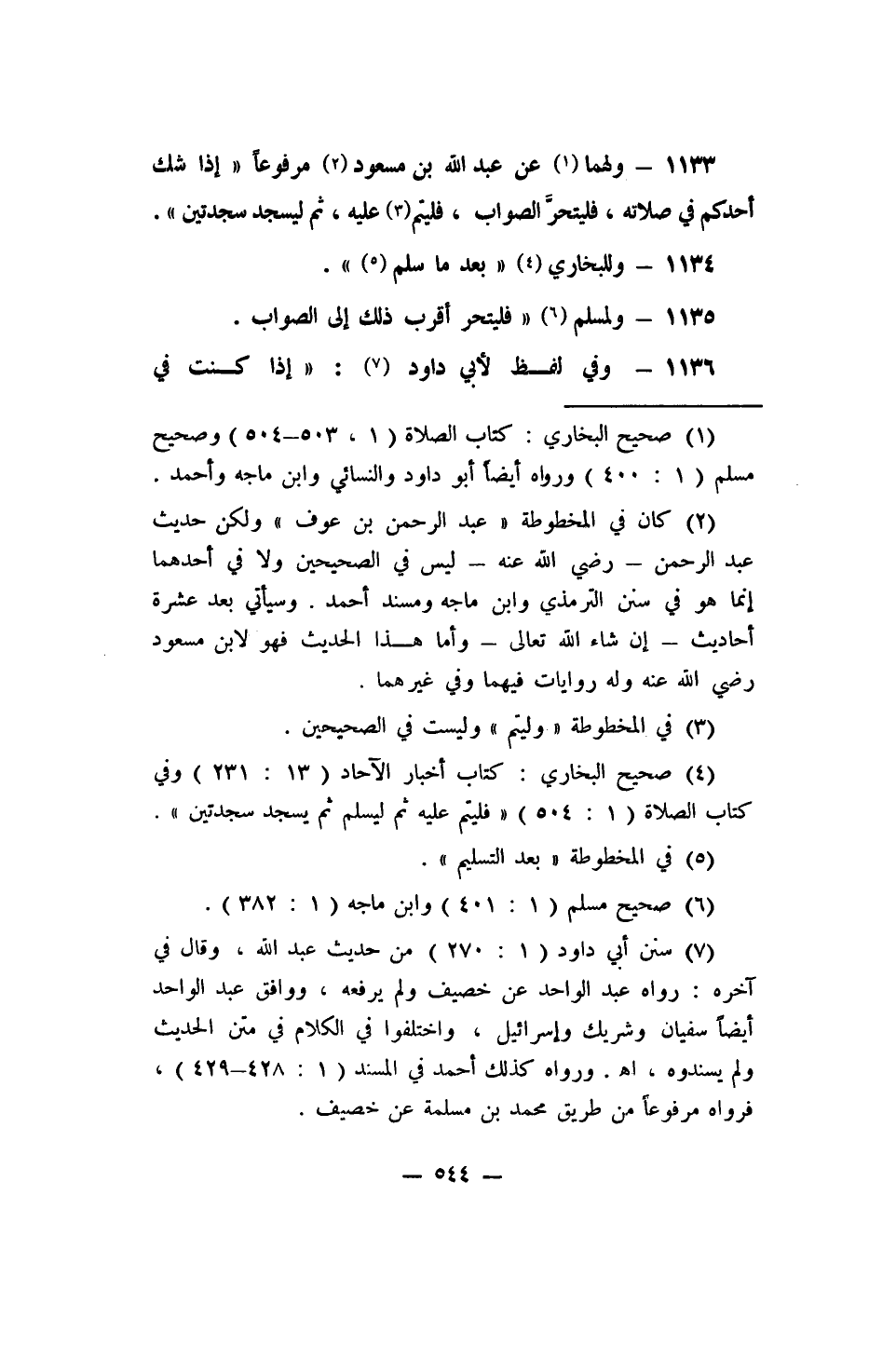 1135- ولمسلم 6: (فليتحر أقرب ذلك إلى الصواب) .