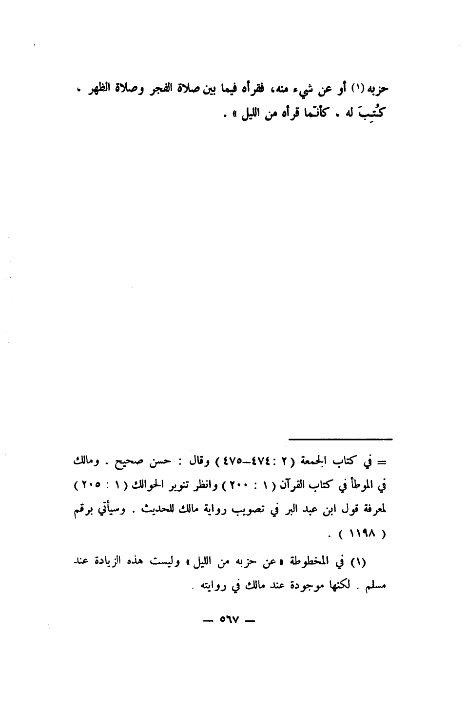 1 في المخطوطة: "عن حزبه من الليل"، وليست هذه الزيادة عند مسلم، لكنها موجودة عند مالك في روايته.