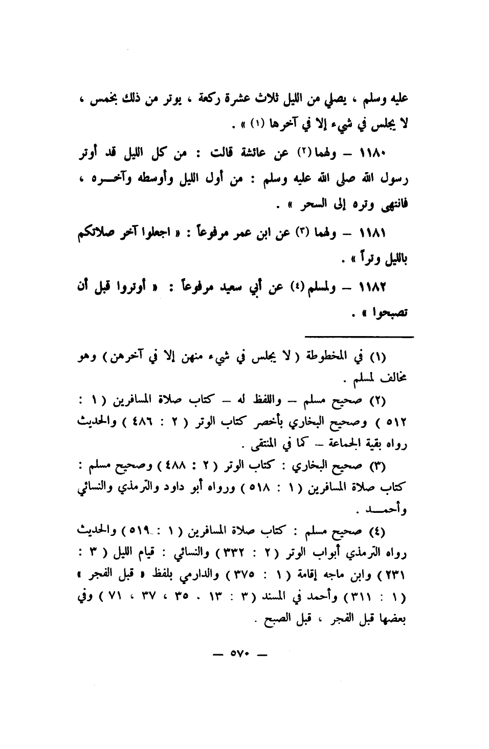 1182- ولمسلم 4 عن أبي سعيد مرفوعا: (أوتروا قبل أن تصبحوا) .