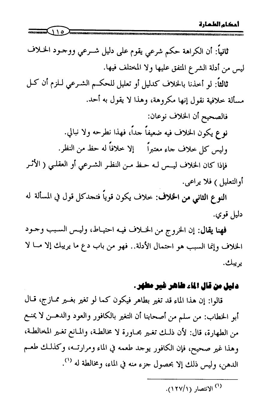 دليل من قال الماء طاهر غير مطهر.