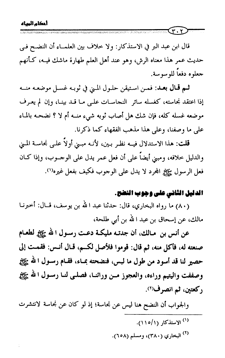 قلت: هذا الاستدلال فيه نظر بين، لأنه مبني أولاً على نجاسة المني والدليل خلافه، ومبني أيضاً على أن فعل عمر يدل على الوجوب، وإذا كان فعل الرسول - صلى الله عليه وسلم - المجرد لا يدل على الوجوب فكيف بفعل غيره (¬١).