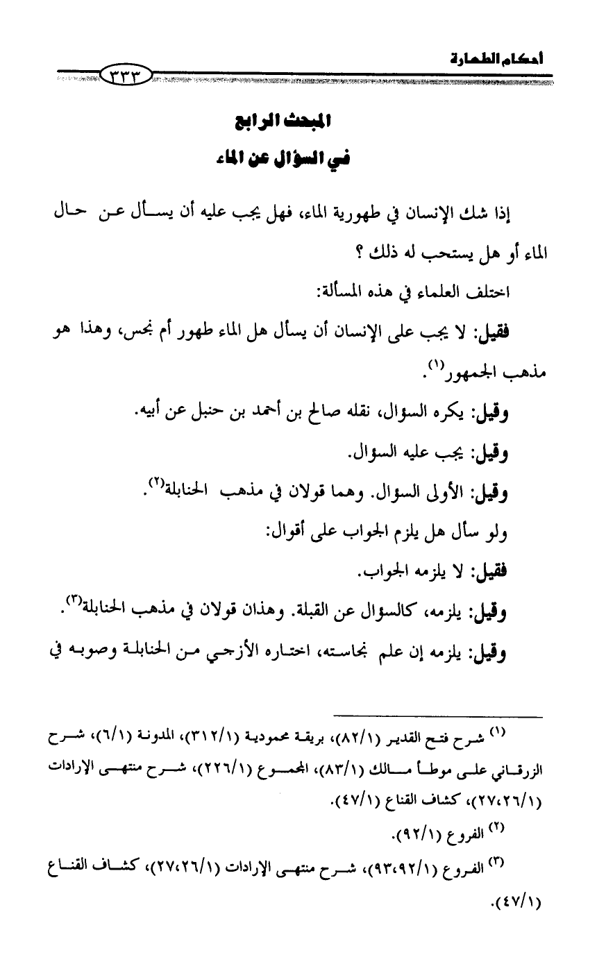 (¬٣) الفروع (١/ ٩٢، ٩٣)، شرح منتهى الإرادات (١/ ٢٦، ٢٧)، كشاف القناع (١/ ٤٧).