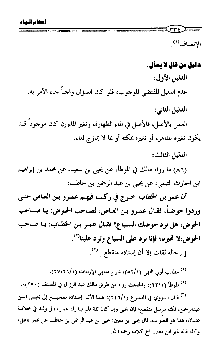 (¬٣) قال النووي في المجموع (١/ ٢٢٦): هذا الأثر إسناده صحيح إلى يحيى بن عبد الرحمن، لكنه مرسل منقطع؛ فإن يحيى وإن كان ثقة فلم يدرك عمر، بل ولد في خلافة عثمان، هذا هو الصواب، قال يحيى بن معين: يحيى بن عبد الرحمن بن حاطب عن عمر باطل، وكذا قاله غير ابن معين. الخ كلامه رحمه الله.