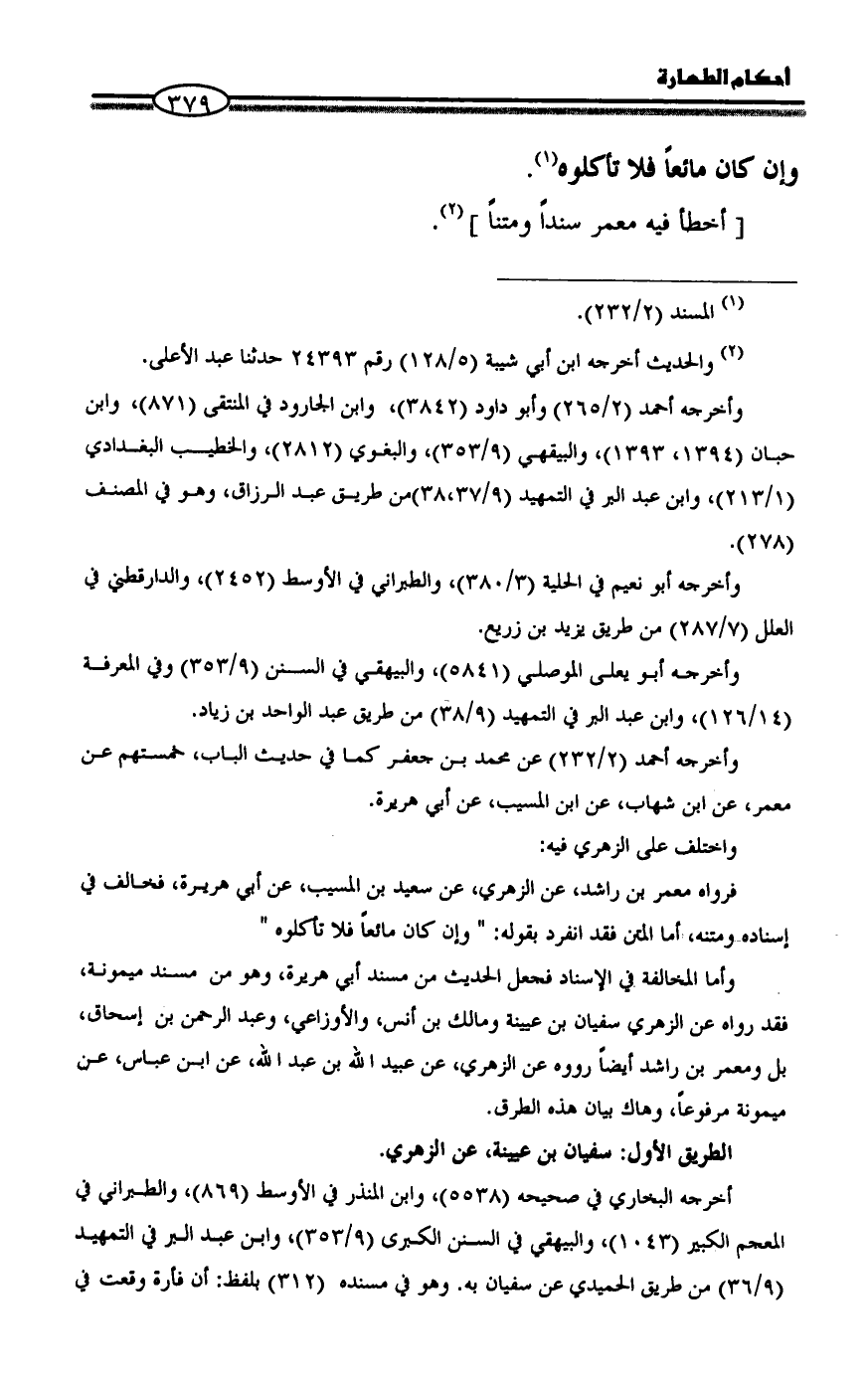 وأما المخالفة في الإسناد فجعل الحديث من مسند أبي هريرة، وهو من مسند ميمونة، فقد رواه عن الزهري سفيان بن عيينة ومالك بن أنس، والأوزاعي، وعبد الرحمن بن إسحاق، بل ومعمر بن راشد أيضاً رووه عن الزهري، عن عبيد الله بن عبد الله، عن ابن عباس، عن ميمونة مرفوعاً، وهاك بيان هذه الطرق.