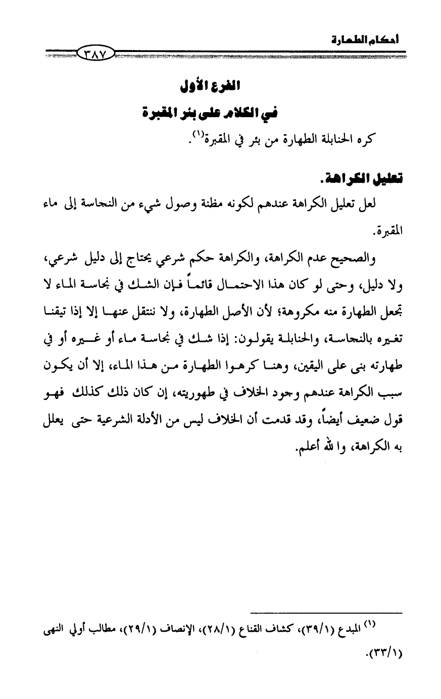 (¬١) المبدع (١/ ٣٩)، كشاف القناع (١/ ٢٨)، الإنصاف (١/ ٢٩)، مطالب أولي النهى (١/ ٣٣).