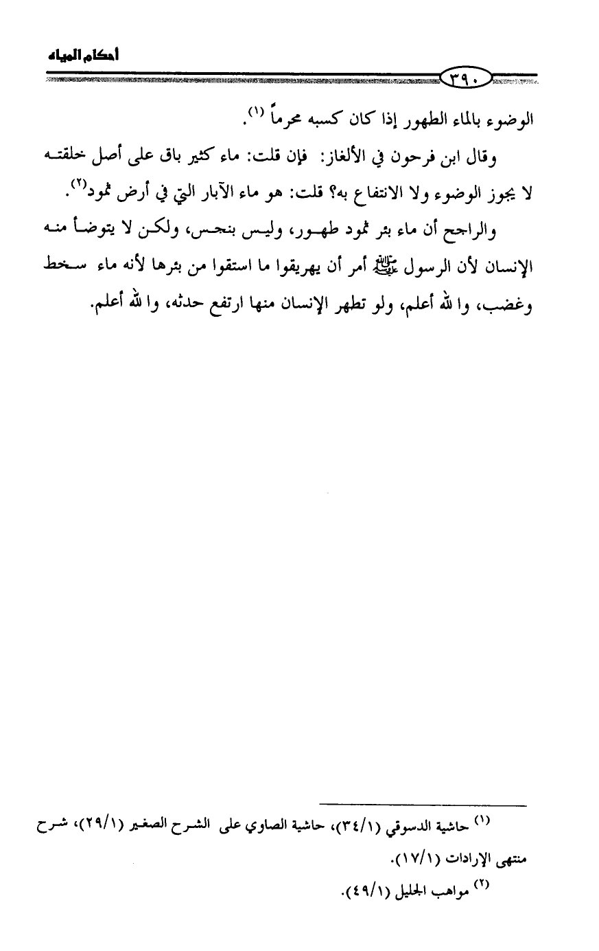 (¬١) حاشية الدسوقي (١/ ٣٤)، حاشية الصاوي على الشرح الصغير (١/ ٢٩)، شرح منتهى الإرادات (١/ ١٧).