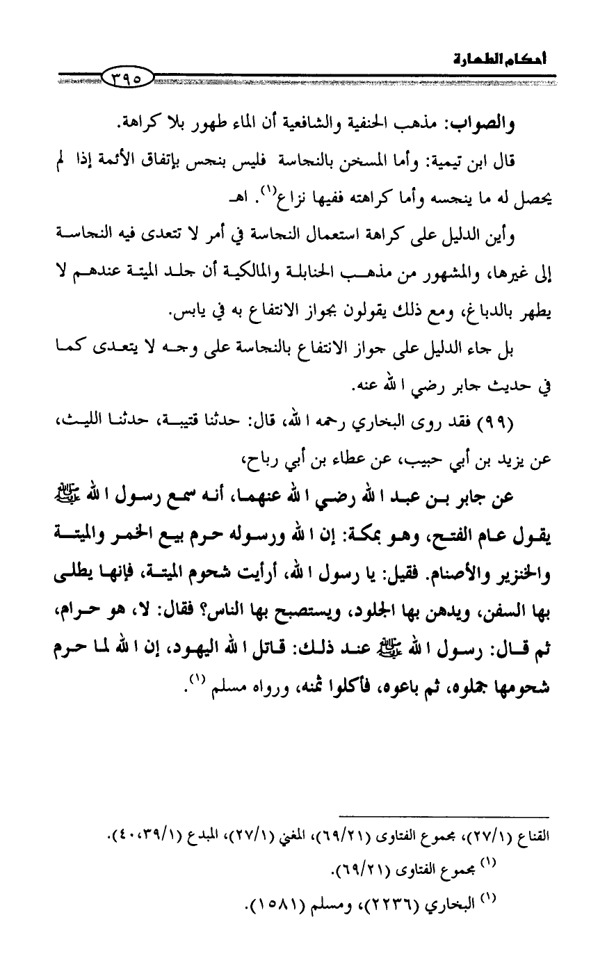 = القناع (١/ ٢٧)، مجموع الفتاوى (٢١/ ٦٩)، المغني (١/ ٢٧)، المبدع (١/ ٣٩، ٤٠).