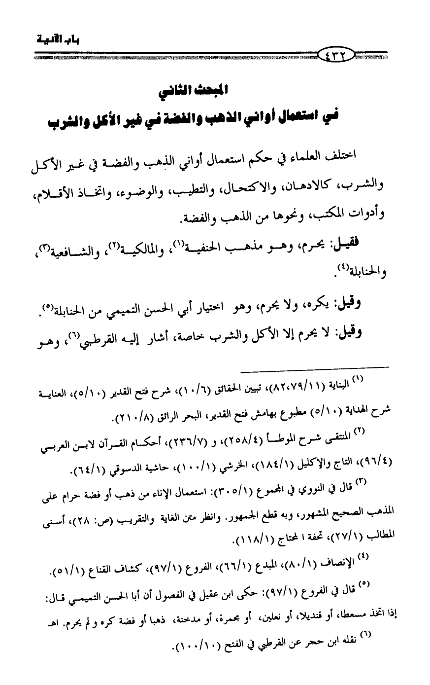 المبحث الثاني في استعمال أواني الذهب والفضة في غير الأكل والشرب