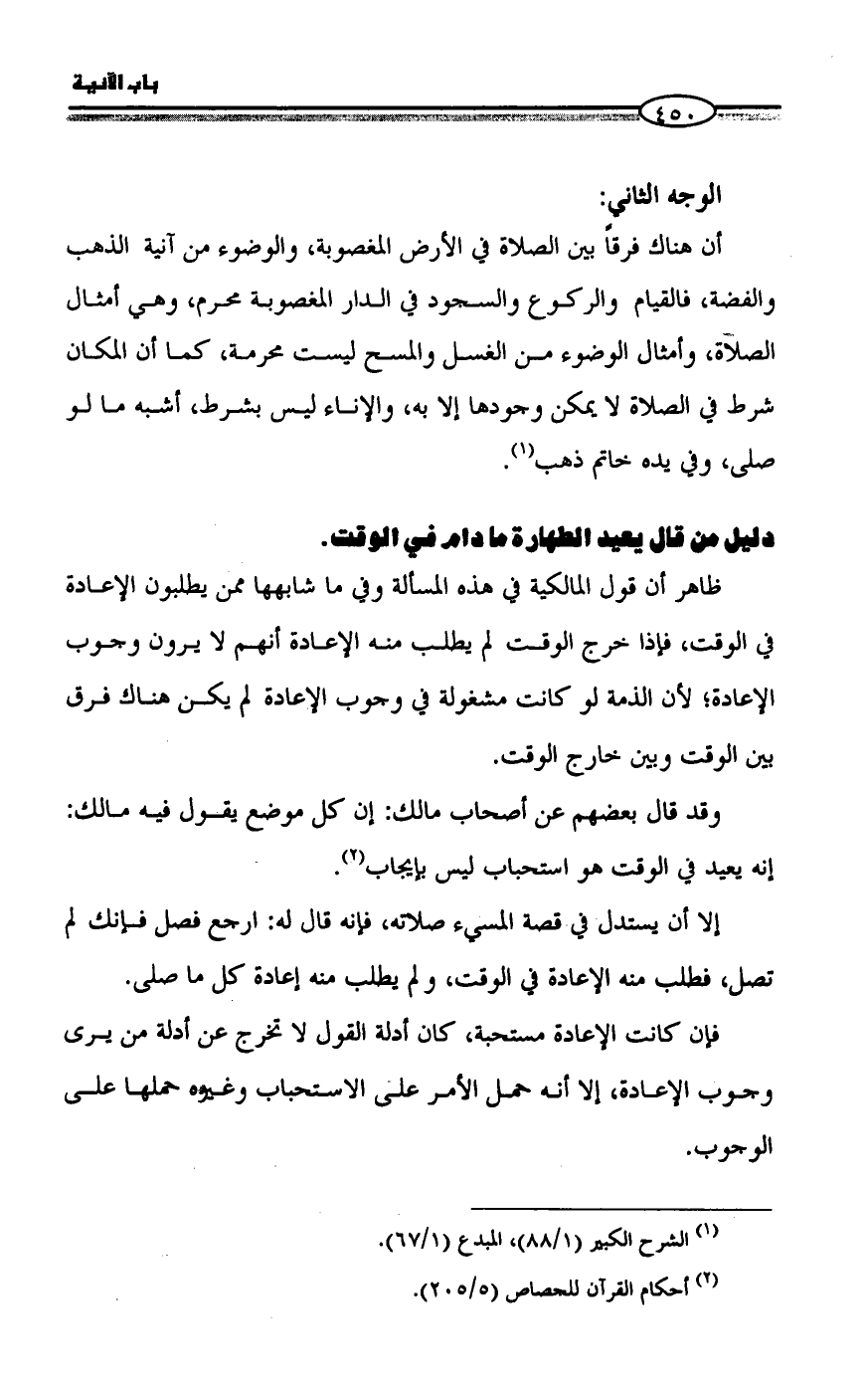 دليل من قال يعيد الطهارة ما دام في الوقت.