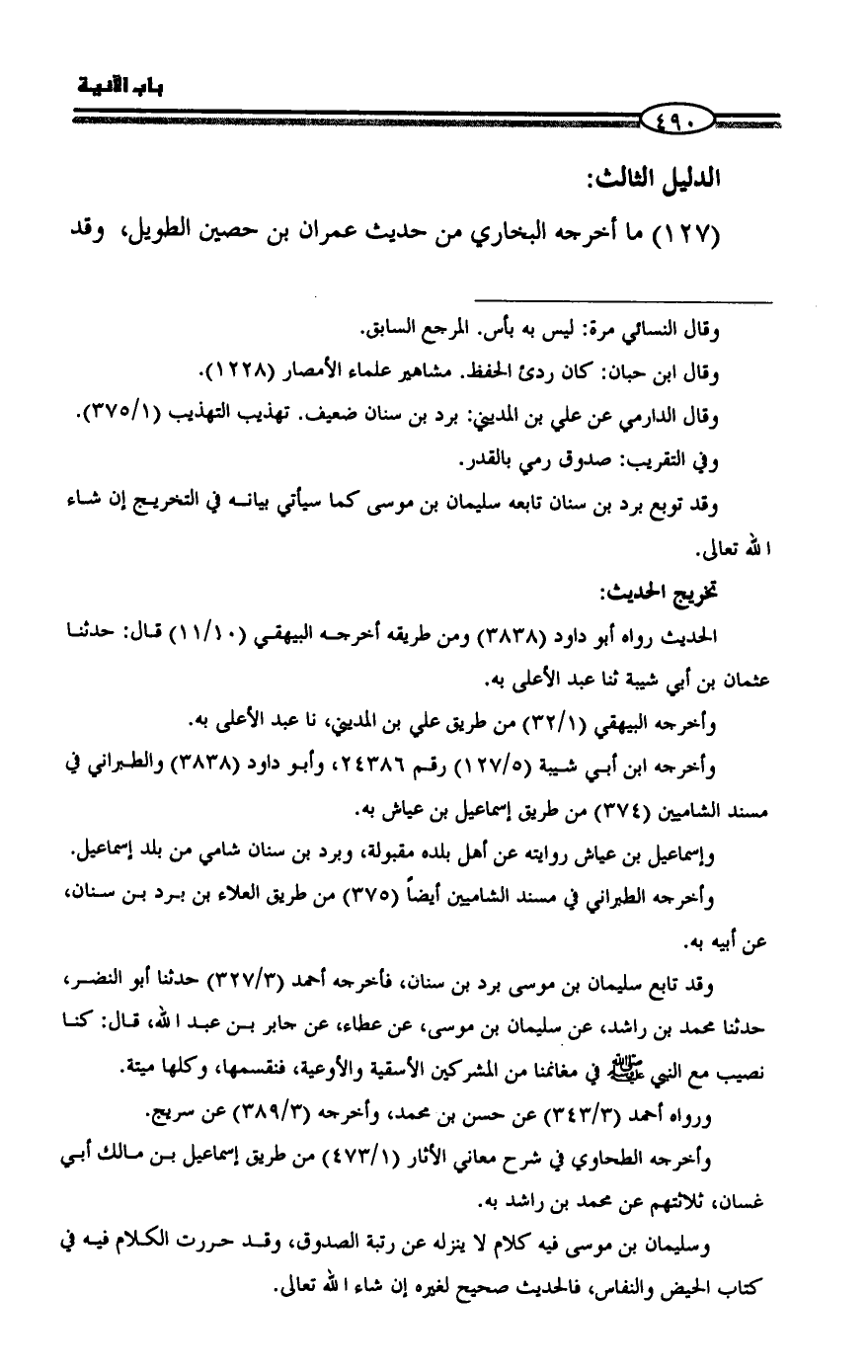 (١٢٧) ما أخرجه البخاري من حديث عمران بن حصين الطويل، وقد