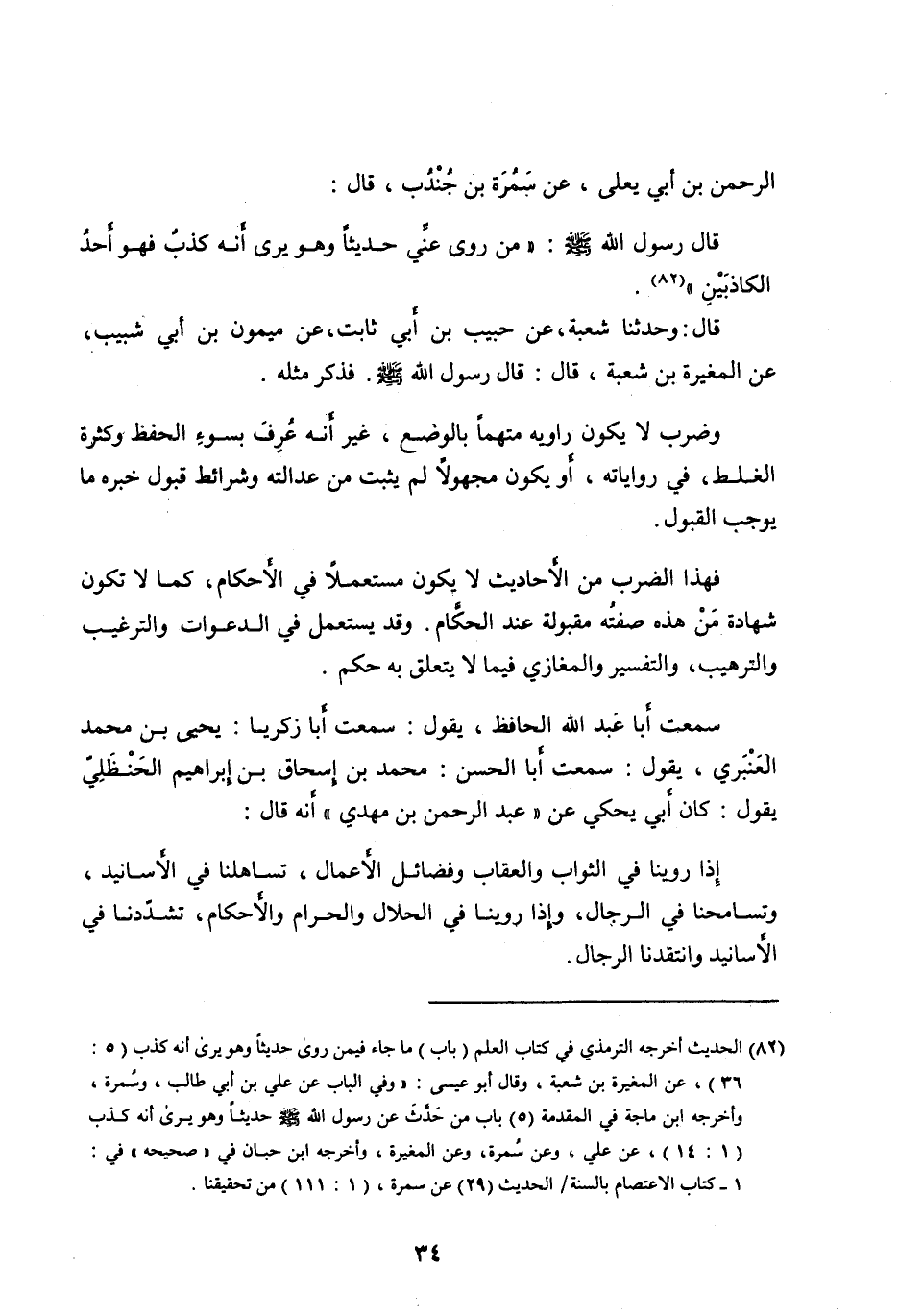 إذا روينا في الثواب والعقاب وفضائل الأعمال، تساهلنا في الأسانيد، وتسامحنا في الرجال، وإذا روينا في الحلال والحرام والأحكام، تشدّدنا في الأسانيد وانتقدنا الرجال.