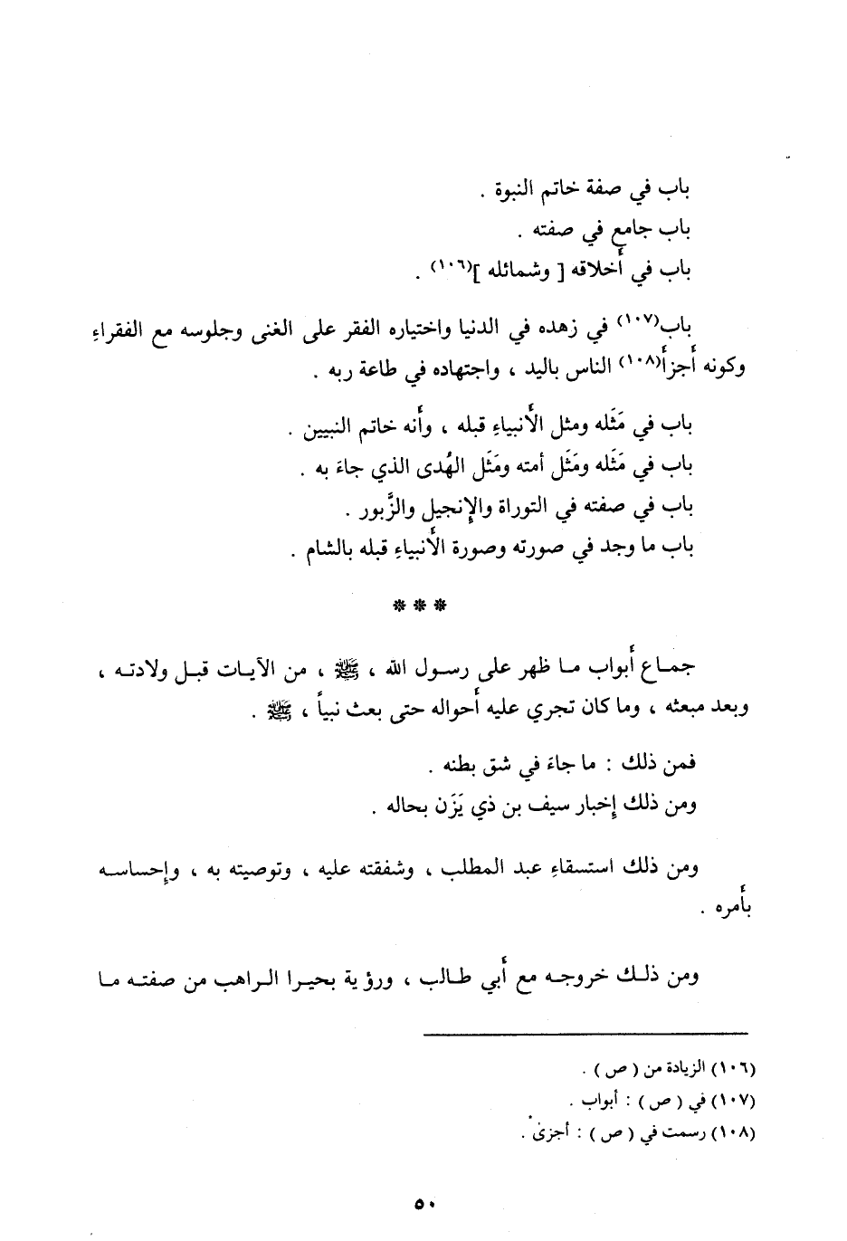 جماع أبواب ما ظهر علي رسول الله، صلى الله عليه وسلم، من الآيات قبل ولادته، وبعد مبعثه، وما كان تجري عليه أحواله حتى بعث نبيا، صلى الله عليه وسلم.