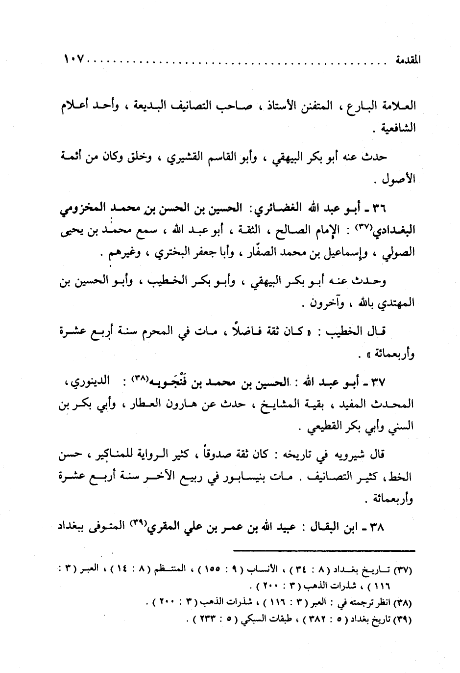 [ (37) ] تاريخ بغداد (8: 34) ، الأنساب (9: 155) ، المنتظم (8: 14) ، العبر (3: