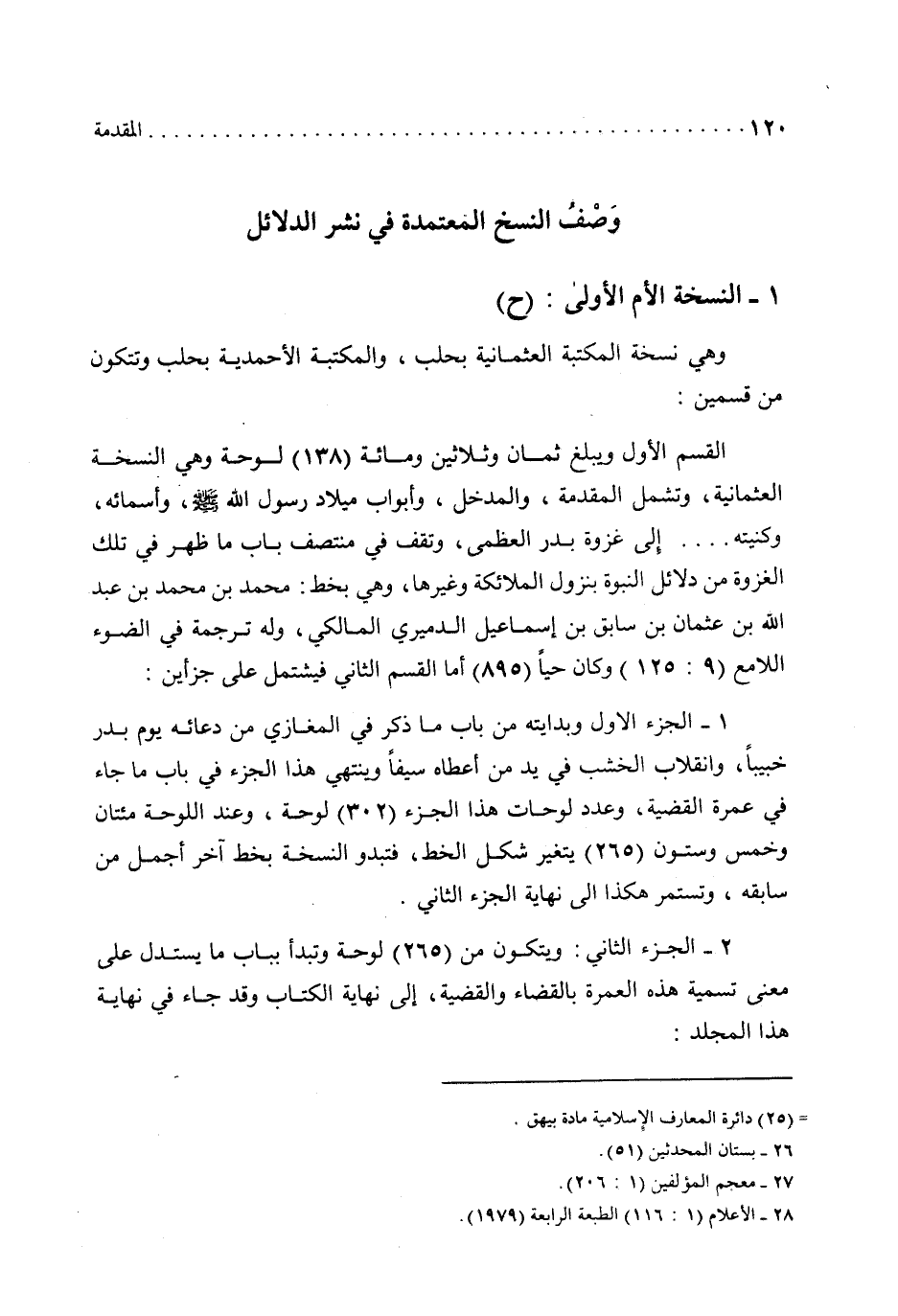 وصف النسخ المعتمدة في نشر الدلائل