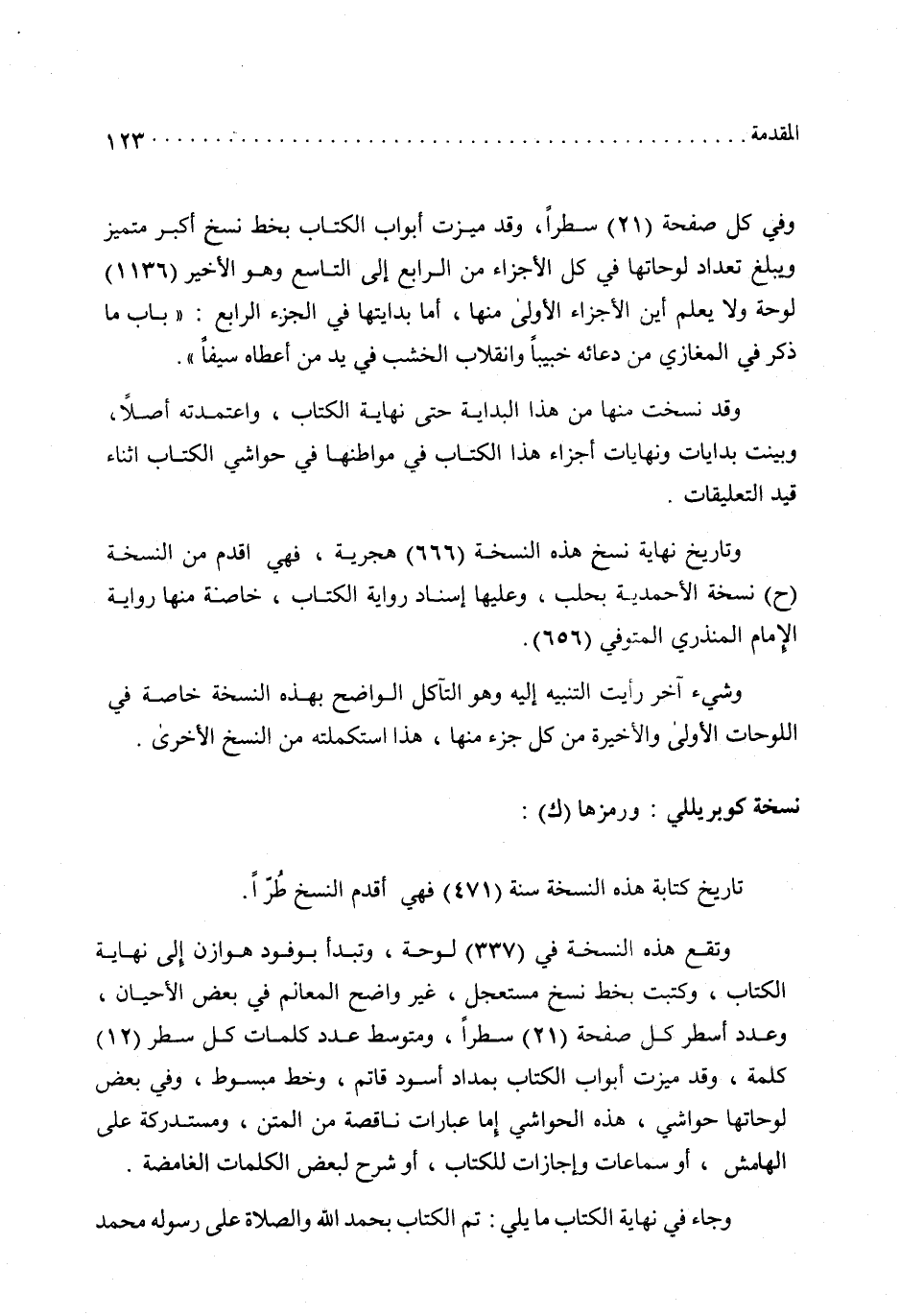 وقد نسخت منها من هذا البداية حتى نهاية الكتاب، واعتمدته أصلا، وبينت بدايات ونهايات أجزاء هذا الكتاب في مواطنها في حواشي الكتاب أثناء قيد التعليقات.