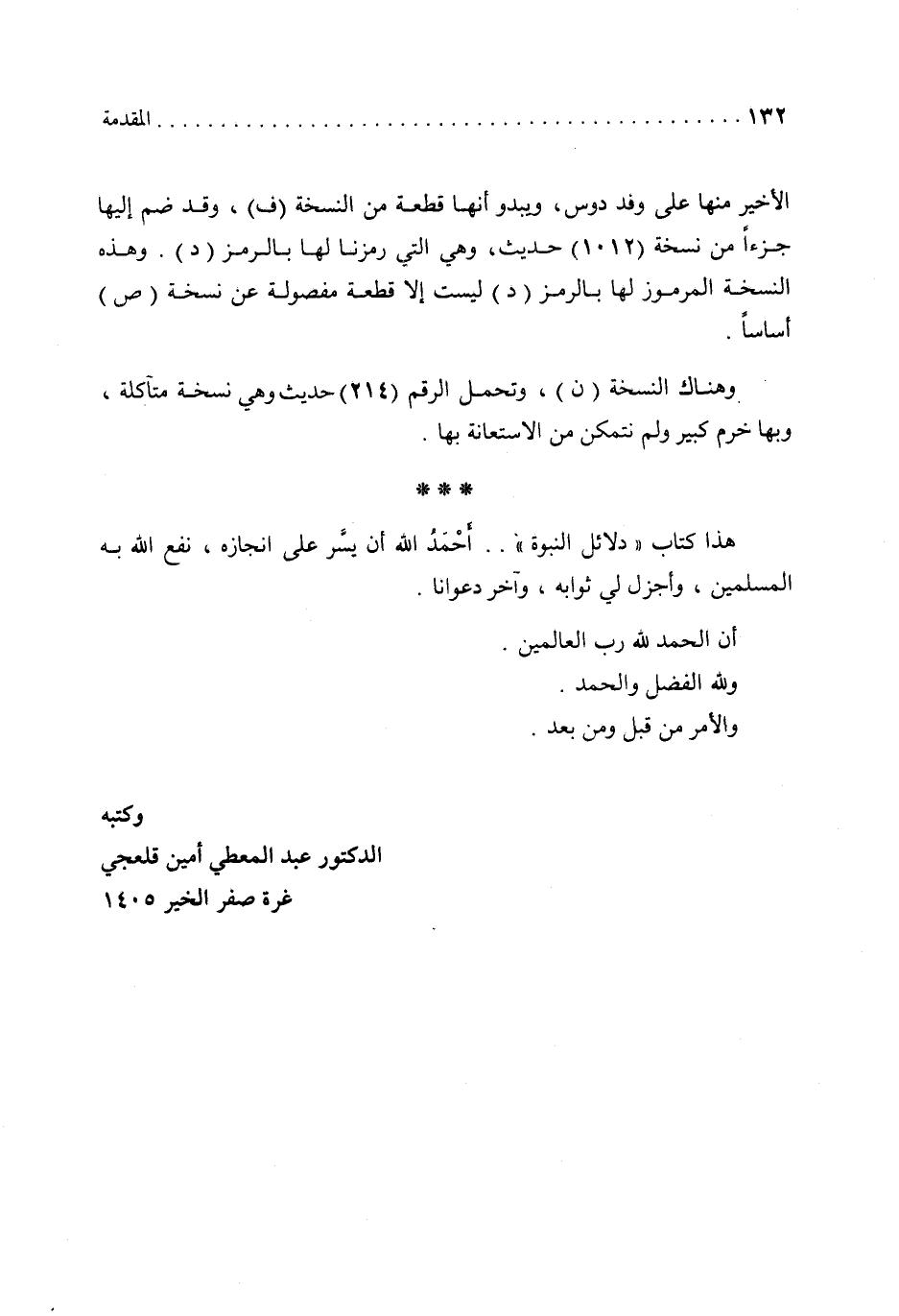 وكتبه الدكتور عبد المعطي أمين قلعجي غرة صفر الخير 1405