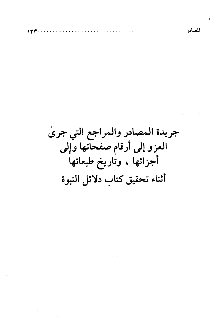 جريدة المصادر والمراجع التي جرى العزو إلى أرقام صفحاتها وإلى أجزائها، وتاريخ طبعاتها أثناء تحقيق كتاب دلائل النبوة