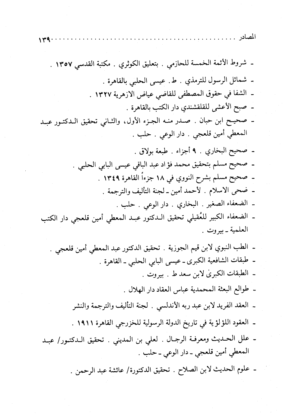 - الطب النبوي لابن قيم الجوزية. تحقيق الدكتور عبد المعطي أمين قلعجي.